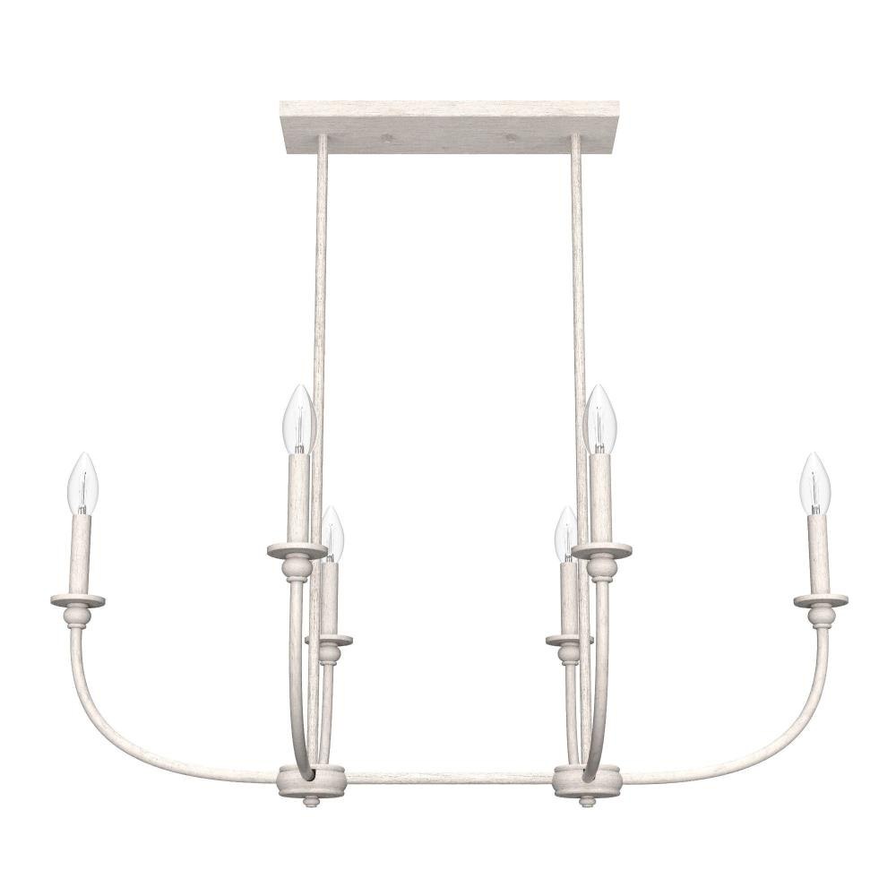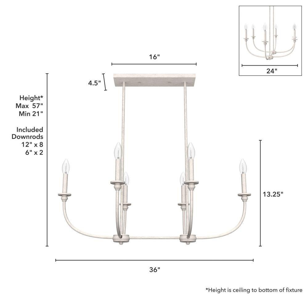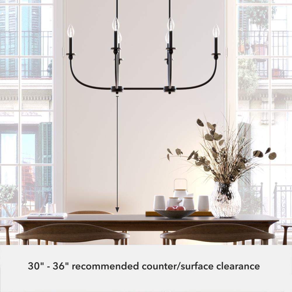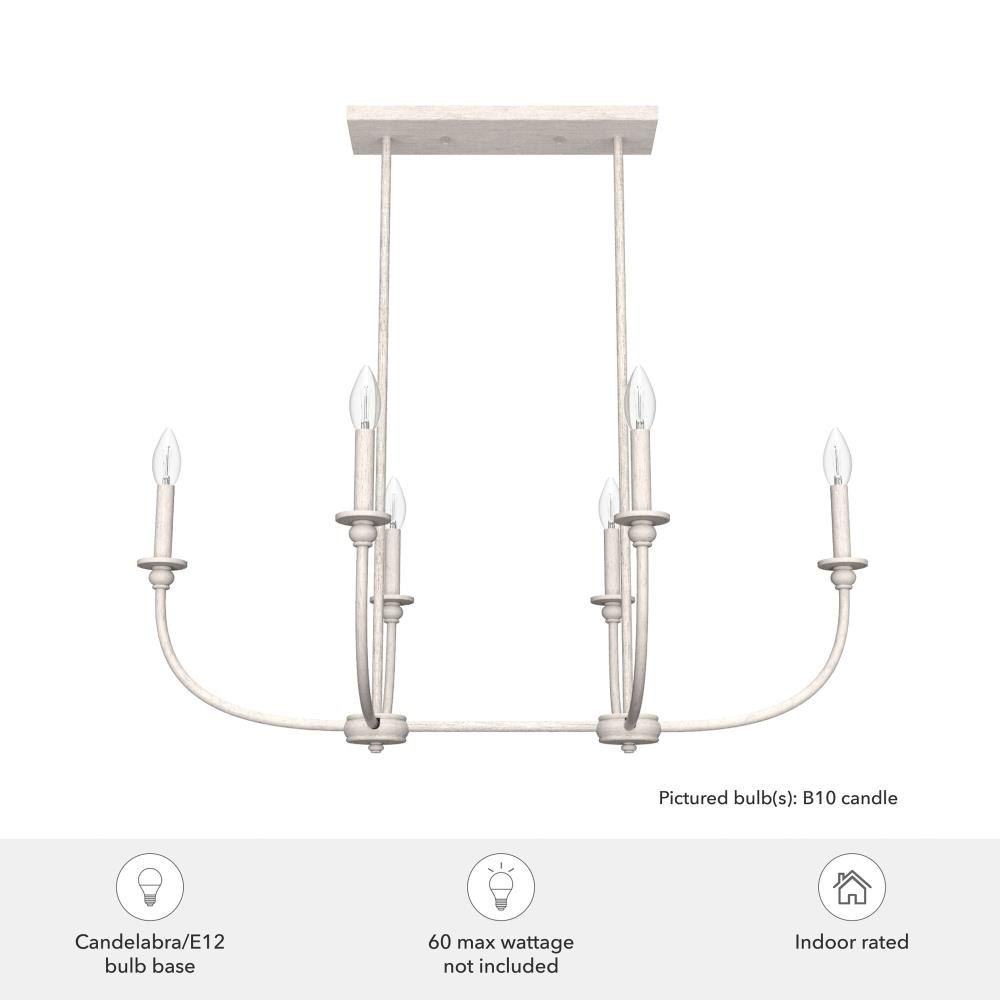 Take your kitchen aesthetic to the next level with a light fixture that makes you want to cook. As stylish as it is durable, the Southcrest 6 light linear chandelier beautifully blends the clean lines of modern design with the old-world elegance of cottage style. Install the Southcrest over your kitchen island or dining table to infuse even more warmth into your cooking and conversation. Rated for indoor use only Requires 6 E12 bulbs. Bulbs not included. MADE FOR INDOORS: For use in indoor spaces like kitchens, bedrooms, living rooms, dining rooms, and entryways. BULB RECOMMENDATION: Maximum 60 W per light bulb or equivalent LED bulb. Bulbs not included. CUSTOMIZABLE HANGING OPTIONS: With the minimum required downrod, the hanging length is 21 inches. When using all of the included downrod, the maximum hanging length is 57 inches.