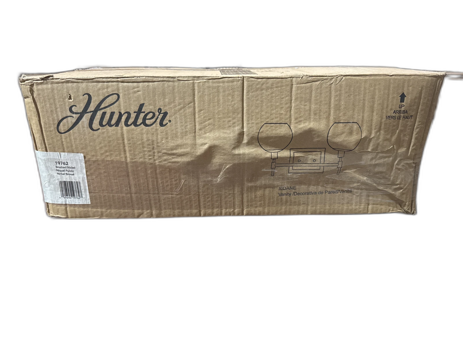 Hunter Xidane 18.25 in. 2-Light Brushed Nickel Vanity Light w/Clear Glass Shades