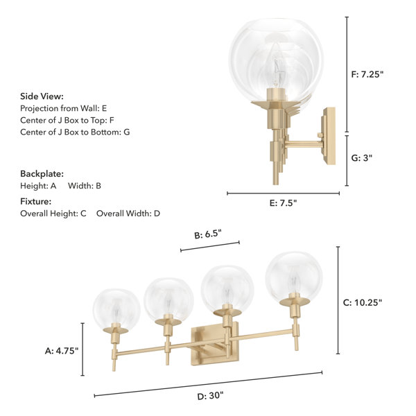 This 4-light vanity fixture layers a sculpted design with a shiny finish that's sure to make a classic statement in your main bathroom or guest bath. It's crafted from aluminum with a tapered wall mount, and it features torchiere-inspired arms with a wide candle base for a sculpted look. Four glass goblet shades and a stem joint are reminiscent of elegant wine glasses, while the 60W candle bulbs (sold separately) inside aim the light all around your space, adding plenty of brightness to your morning and nighttime routine. Plus, with dimmable capability, you’re able to control the lighting throughout the day.