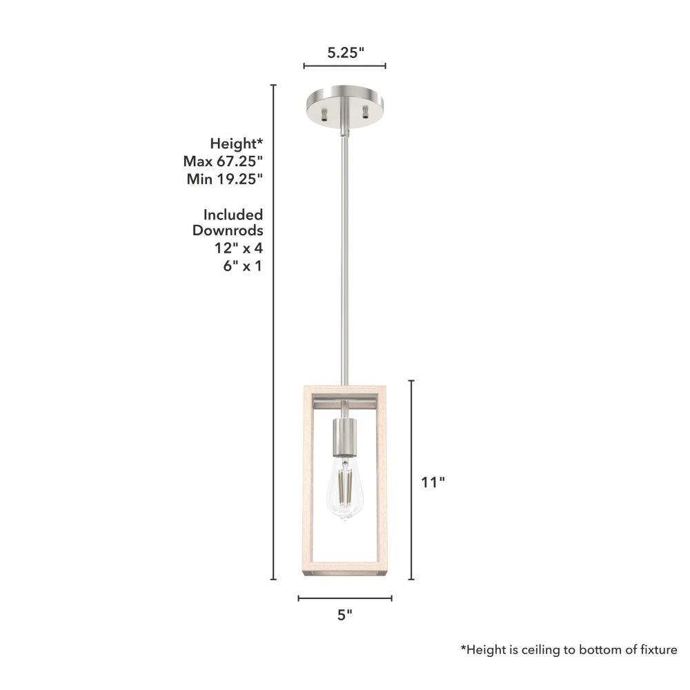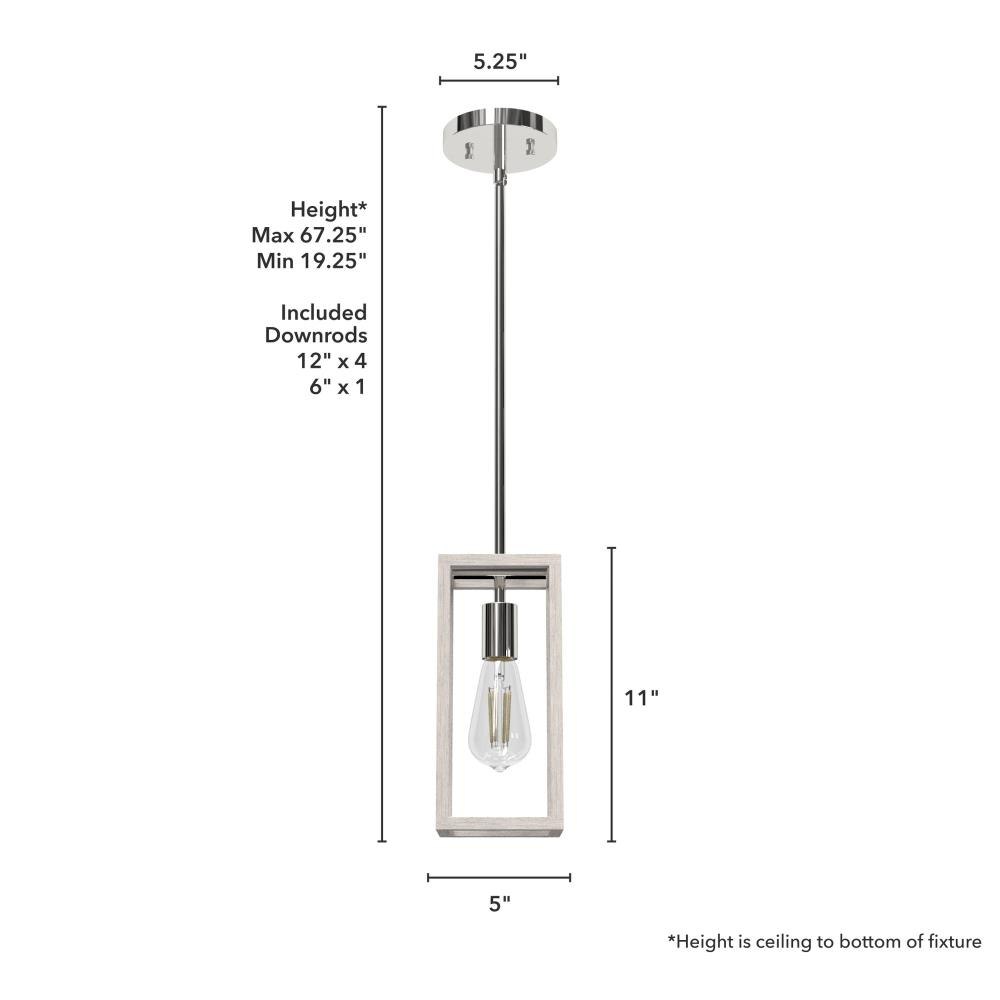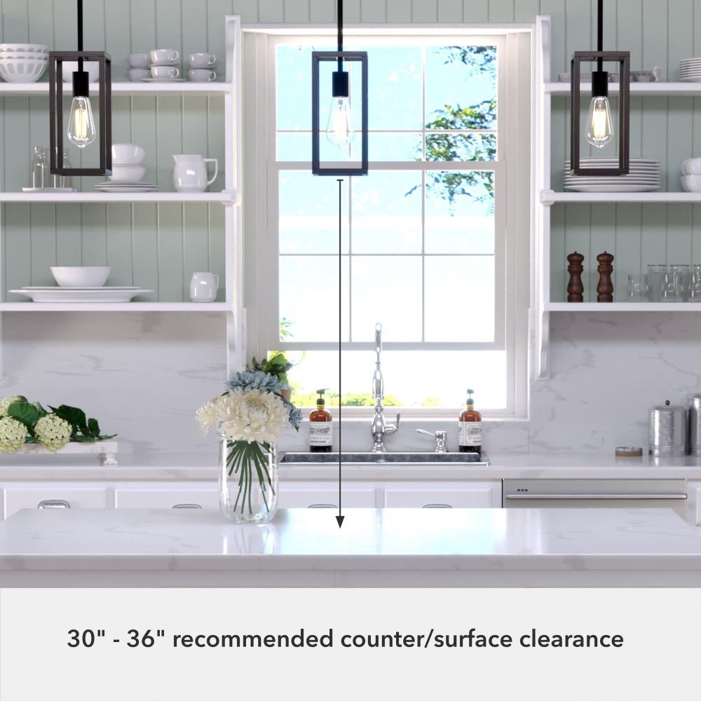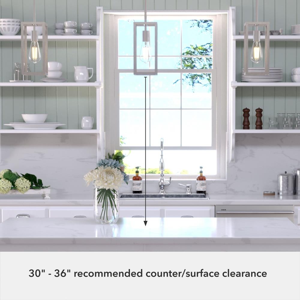 Modern and welcoming. The Squire Manor 1 light mini pendant will add shine to your days. A line of three or four over your countertop will bring a modern flair to your space. A little bit farmhouse a little bit minimal, this fixture is big on style. The Squire Manor collection is at home in any setting. Rated for indoor use only Requires 1 E26 bulbs. Bulbs not included. MADE FOR INDOORS: For use in indoor spaces like kitchens, bedrooms, living rooms, dining rooms, and entryways. BULB RECOMMENDATION: Maximum 60 W per light bulb or equivalent LED bulb. Bulbs not included. PICTURED HERE: Match our image using ST64 Edison light bulbs. CUSTOMIZABLE HANGING OPTIONS: With the minimum required downrod, the hanging length is 19.25 inches. When using all of the included downrod, the maximum hanging length is 67.25 inches.