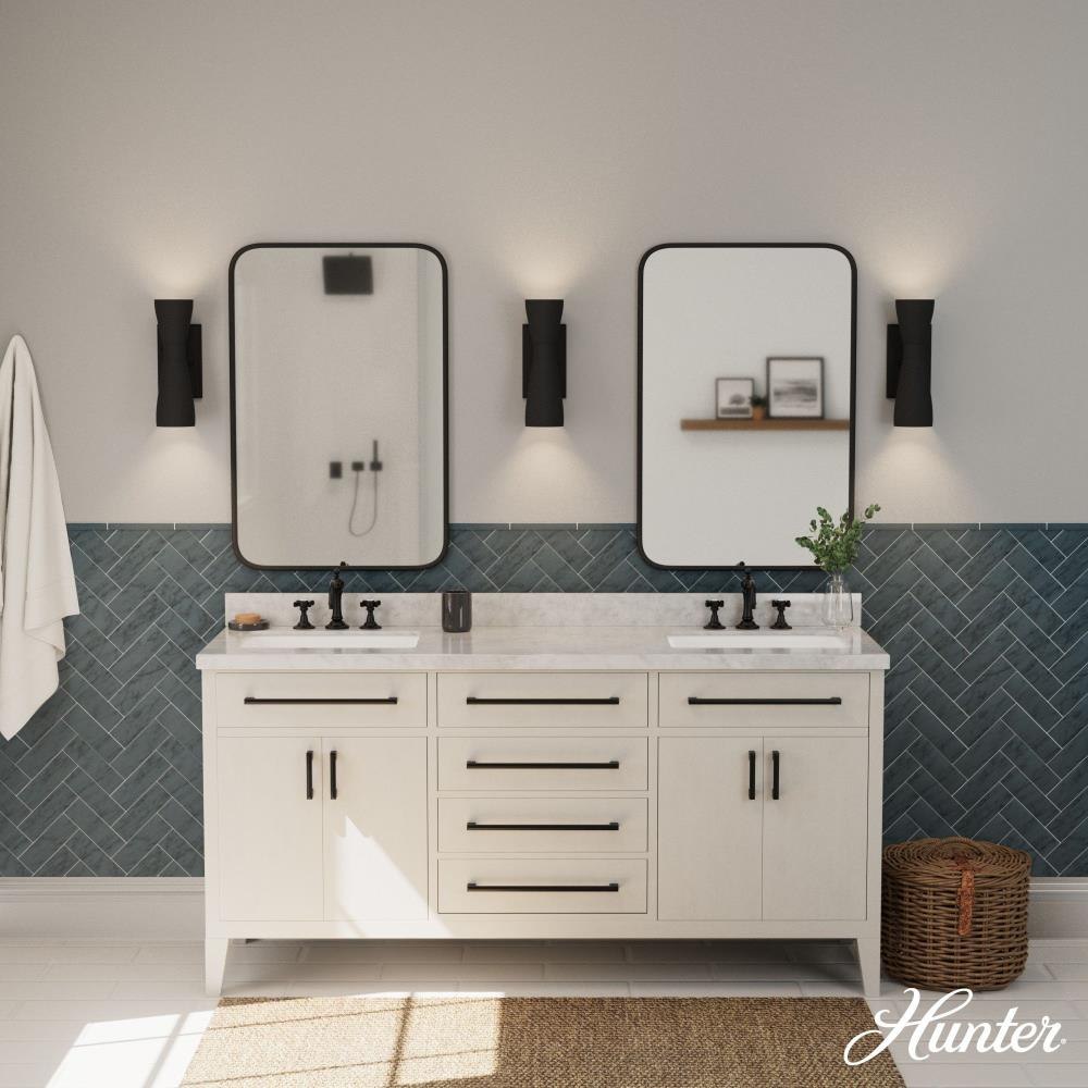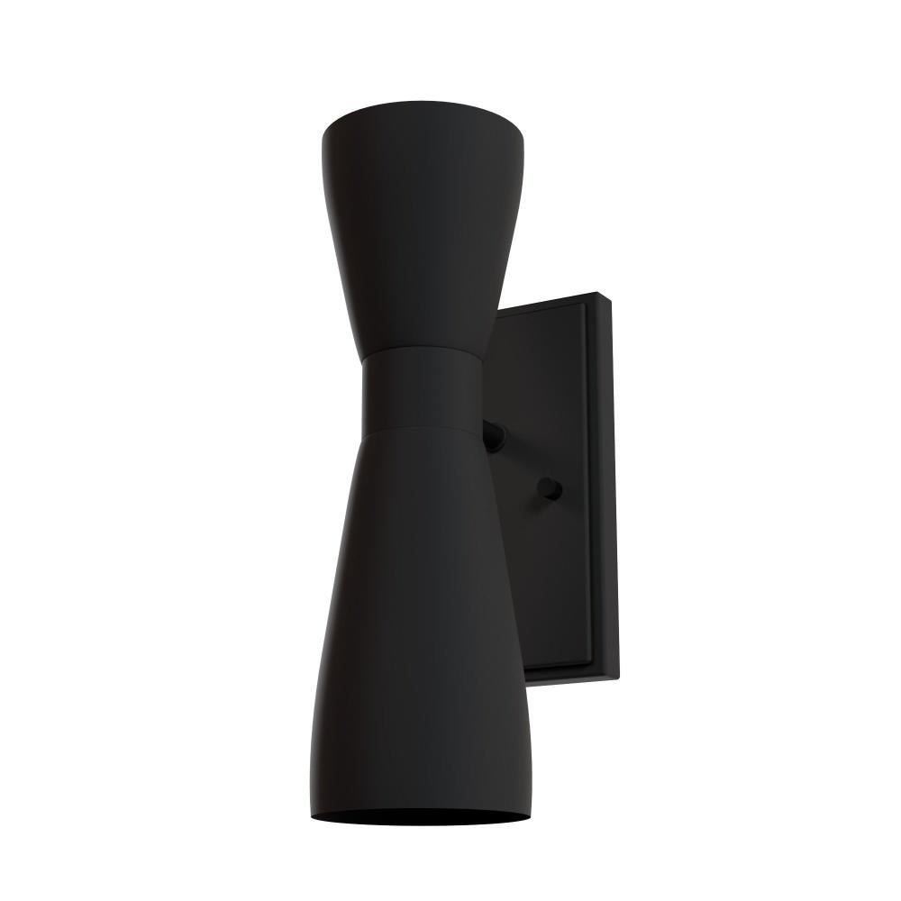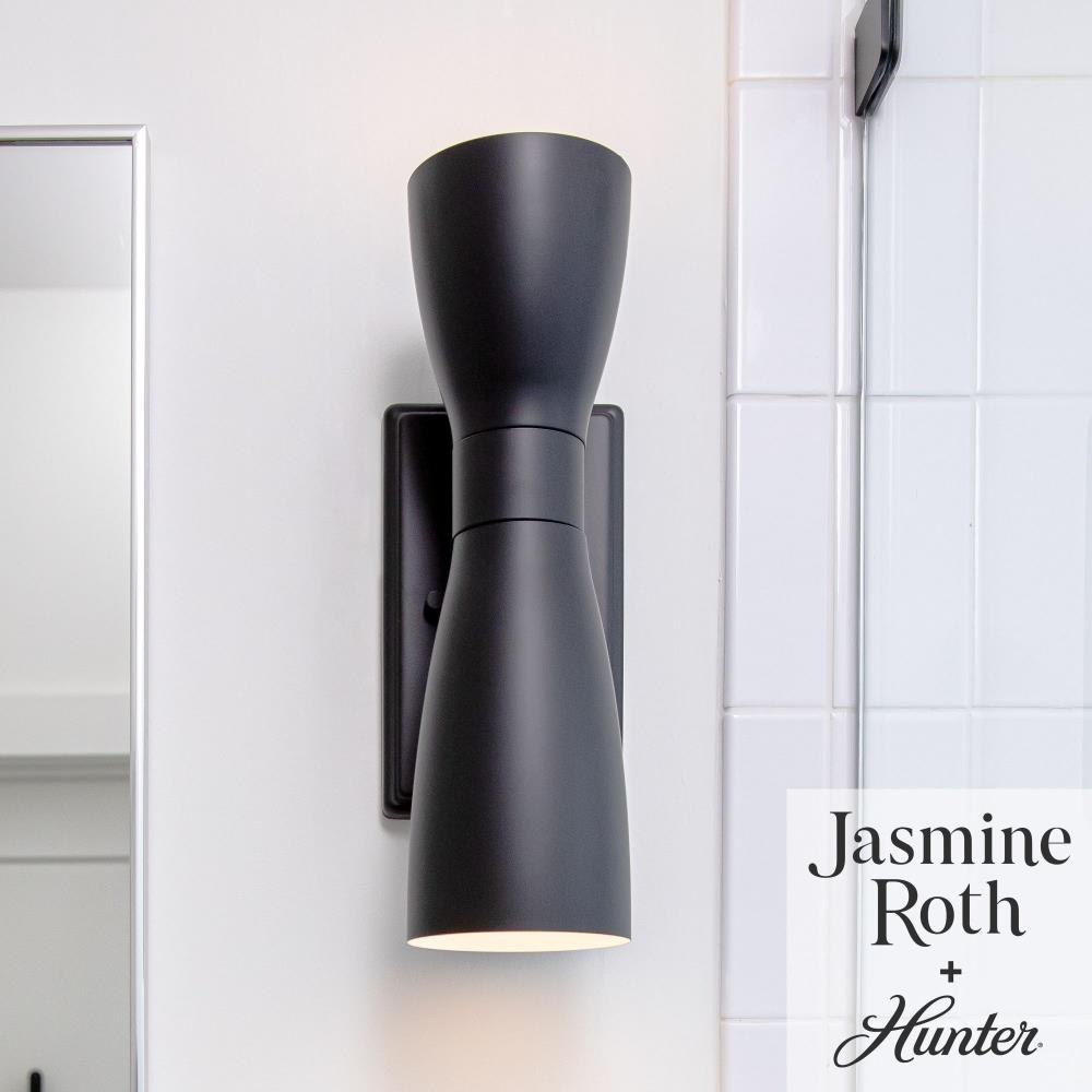 Channeling mid-century modern allure, the Zola Sconce captivates with its unique and eye-catching sculptural silhouette. Designed in collaboration with Jasmine Roth, this exquisite sconce features metal pharmacy shades that effortlessly steal the spotlight at any occasion. The elegant two light shade shines up and down to create a harmonious balance between subtle beauty and a commanding focal point for every room. To create a cohesive and stylish ambiance, mix and match with other fixtures from this collection or our sophisticated ceiling fan designs. Elevate your home decor with the Zola Sconce, and delight in its timeless design for years to come.INDOOR-DAMP RATED: For use in indoor spaces exposed to humidity like bathrooms and laundry rooms. BULB RECOMMENDATION: Maximum 60 W per light bulb or equivalent LED bulb. Bulbs not included. MODERN: The clean lines of the modern style uses a monochromatic color palette the inspires with clean lines, minimalism, natural materials, and natural light. WARRANTY: One-year limited warranty backed by the trusted experts at Hunter. Requires 2 E26 Bulbs. Bulbs not included.