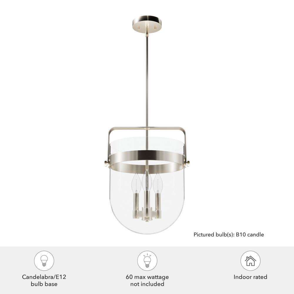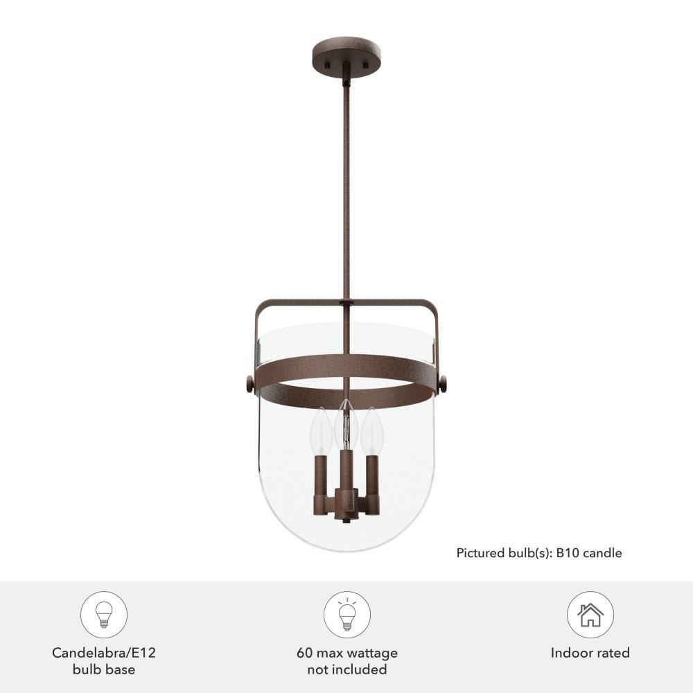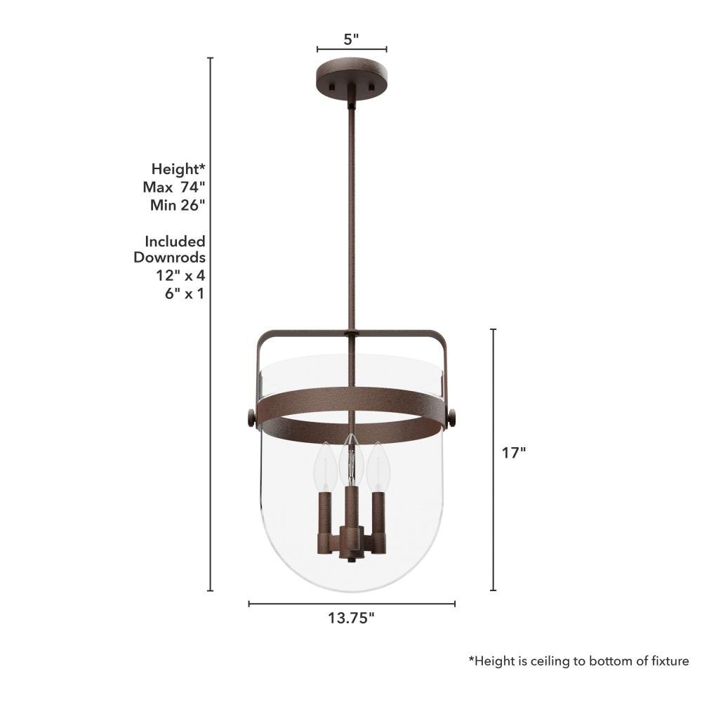 The Karloff 3 light Pendant will be a perfect fit for your space. Whether your tastes lean towards contemporary, traditional, or farmhouse, this fixture blends seamlessly with your design. The metal rod holds three lights suspended above the bell-shaped glass, giving clear and beautiful light to your space. MADE FOR INDOORS: For use in indoor spaces like kitchens, bedrooms, living rooms, dining rooms, and entryways. BULB RECOMMENDATION: Maximum 60 W per light bulb or equivalent LED bulb. Bulbs not included. PICTURED HERE: Match our image using B10 Candle light bulbs. CUSTOMIZABLE HANGING OPTIONS: With the minimum required downrod, the hanging length is 26 inches. When using all of the included downrod, the maximum hanging length is 74 inches.