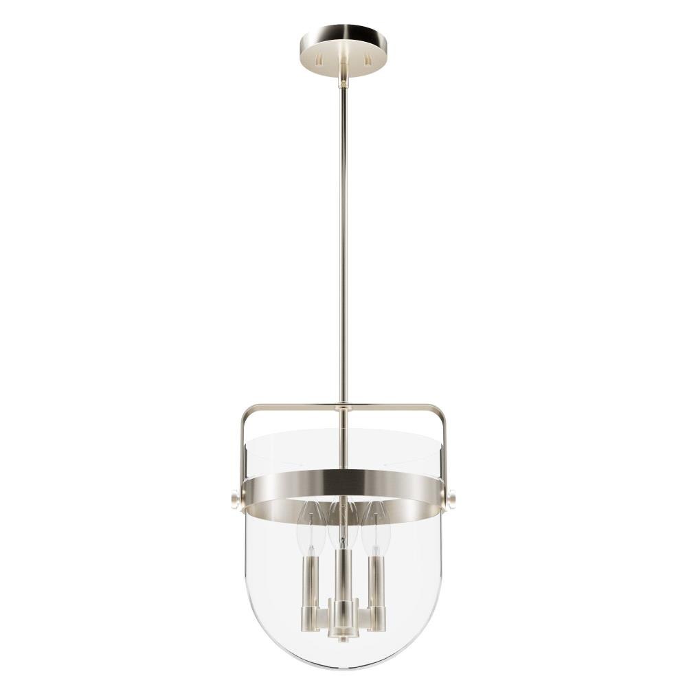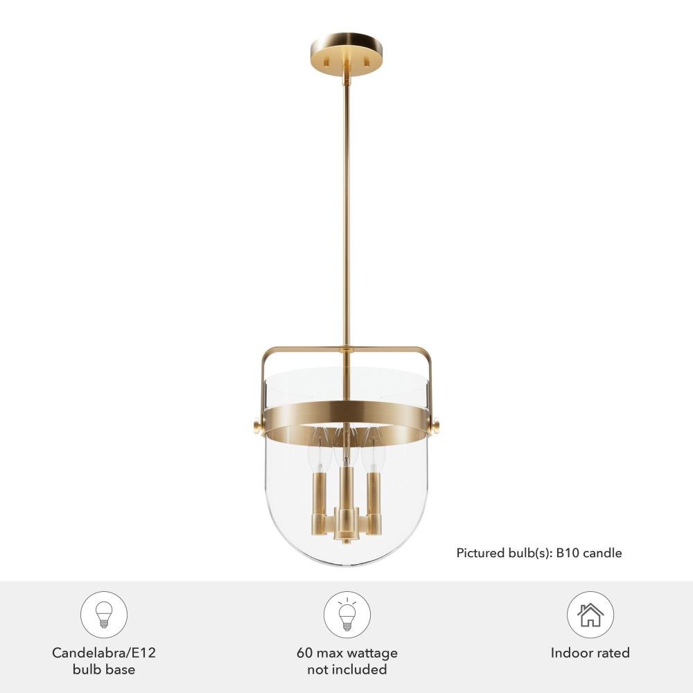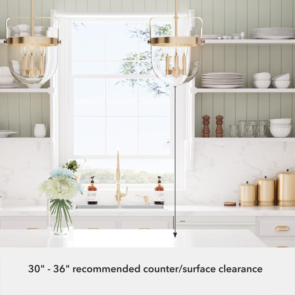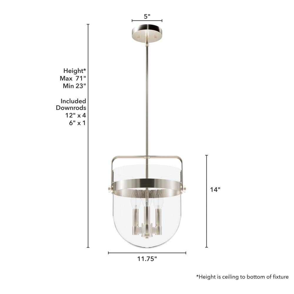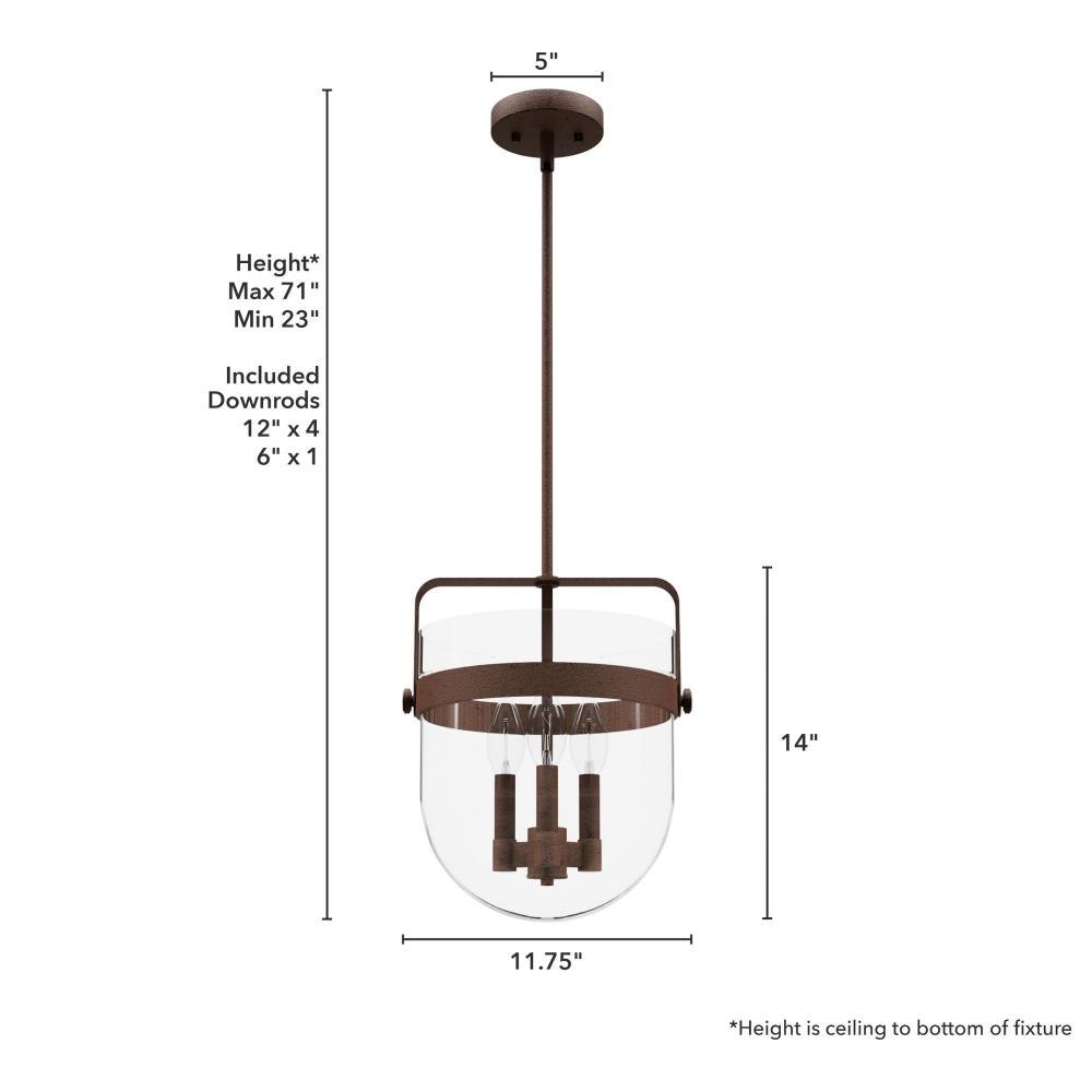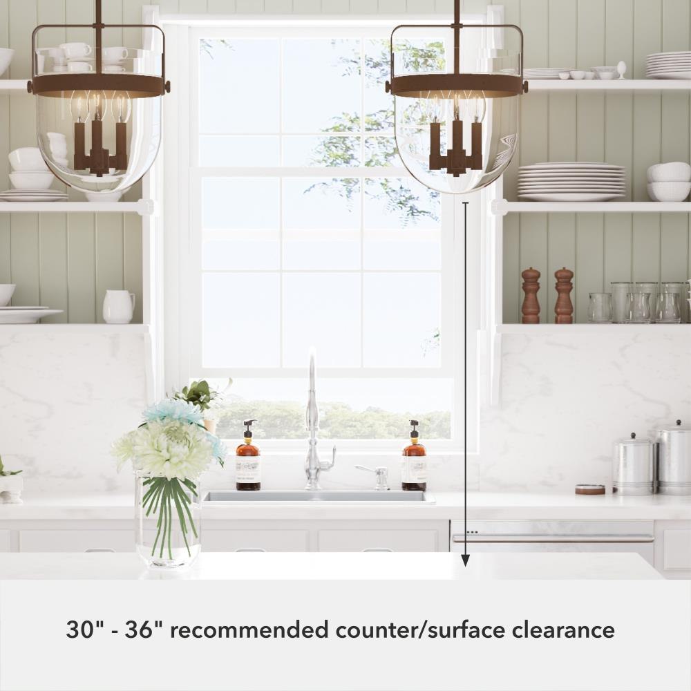 No need to fret over the perfect lighting for your kitchen or dining room. The Karloff 3 light pendant fits perfectly with almost any décor. The genius design of this metal and bell-shaped glass of the Karloff collection will be the bell of the ball that lights up all of your spaces. MADE FOR INDOORS: For use in indoor spaces like kitchens, bedrooms, living rooms, dining rooms, and entryways. BULB RECOMMENDATION: Maximum 60 W per light bulb or equivalent LED bulb. Bulbs not included. PICTURED HERE: Match our image using B10 Candle light bulbs. CUSTOMIZABLE HANGING OPTIONS: With the minimum required downrod, the hanging length is 23 inches. When using all of the included downrod, the maximum hanging length is 71 inches.