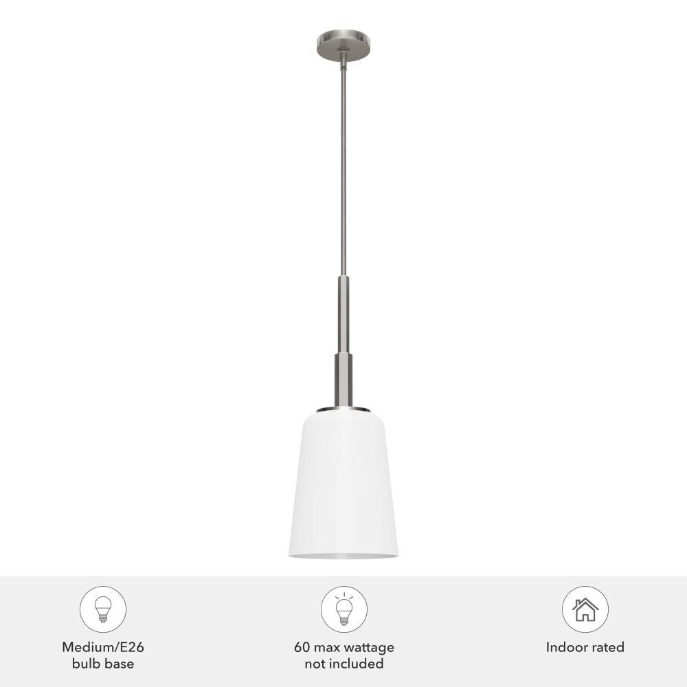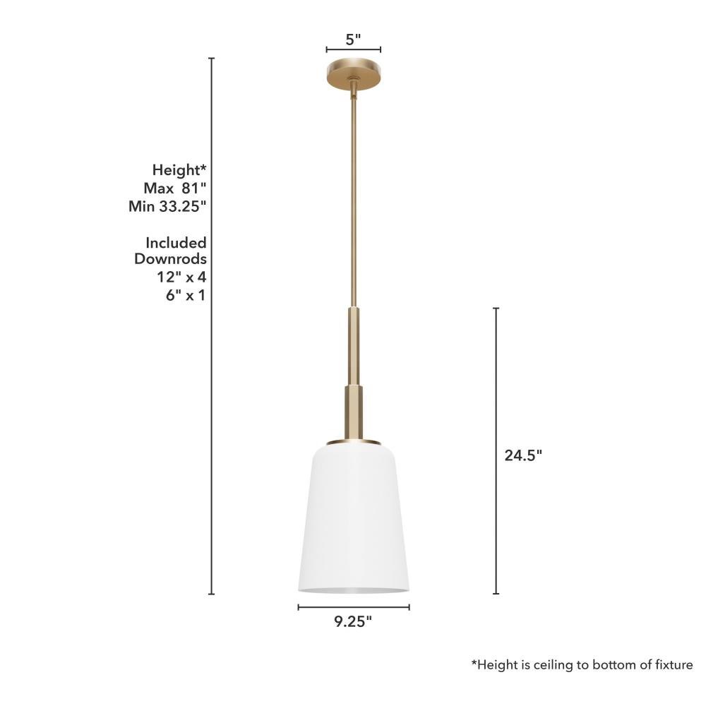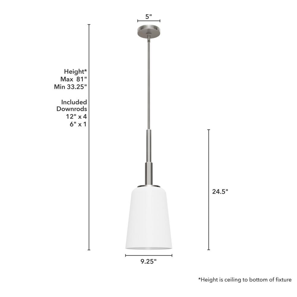 Sometimes you need to add a little something to complete the design of your space, and the Nolita medium pendant is the perfect addition to your island or dining table. The glass shades and metal rod add an understated effect of elegance to your space. Hang in an entry or the kitchen for an inviting and stylish effect.. Rated for indoor use only. Requires 1 E26 bulbs. Bulbs not included.. MADE FOR INDOORS: For use in indoor spaces like kitchens, bedrooms, living rooms, dining rooms, and entryways.. BULB RECOMMENDATION: Maximum 60 W per light bulb or equivalent LED bulb. Bulbs not included.. CUSTOMIZABLE HANGING OPTIONS: With the minimum required downrod, the hanging length is 33.25 inches. When using all of the included downrod, the maximum hanging length is 81 inches.. WARRANTY: One-year limited warranty backed by the trusted experts at Hunter.