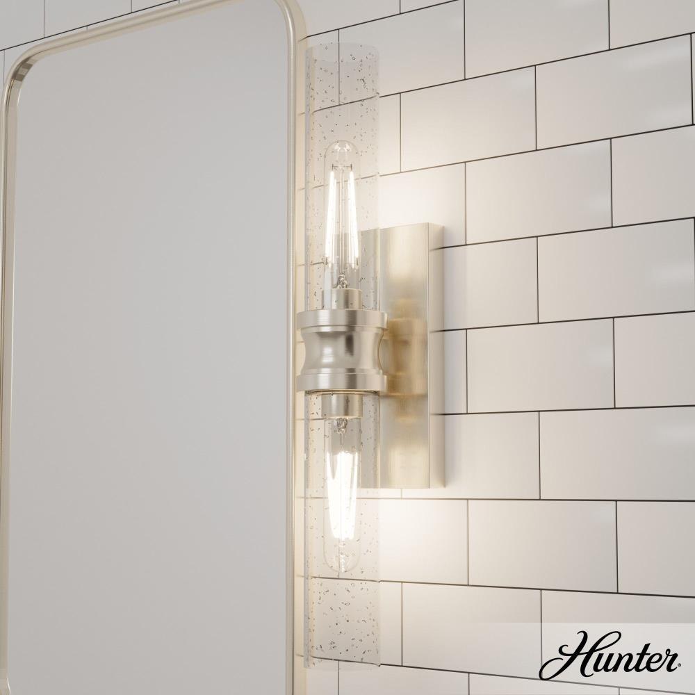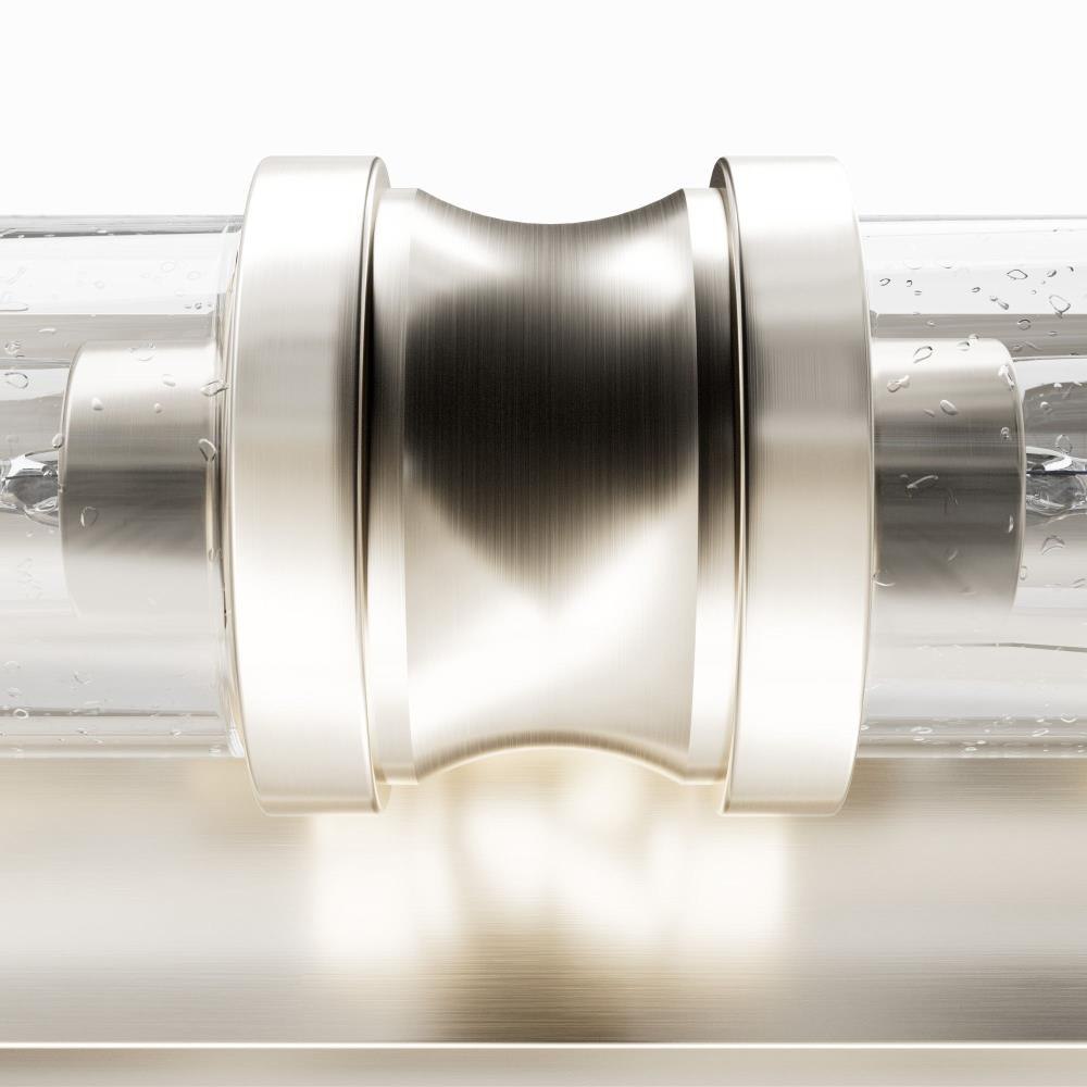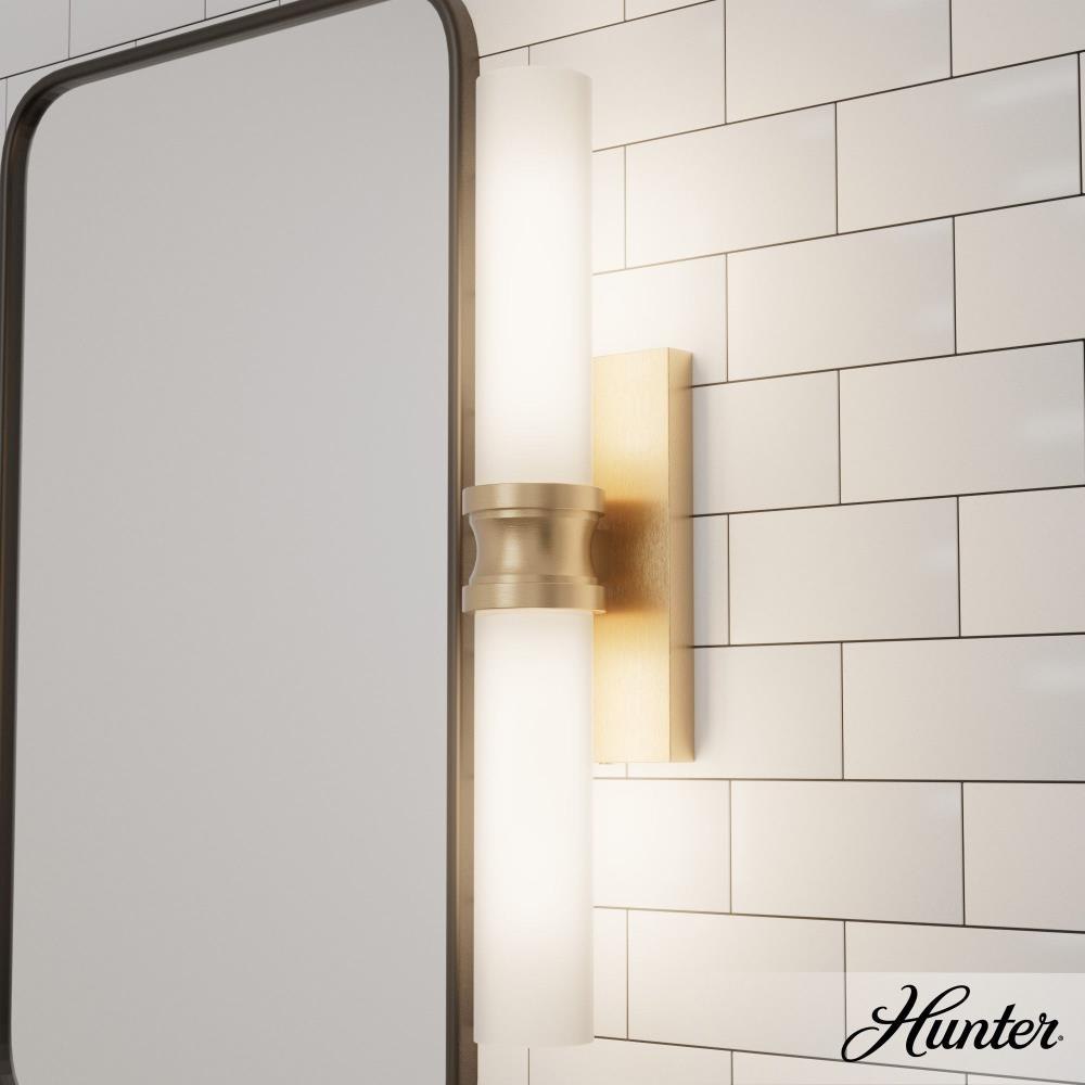 The graceful design of the Lenlock vanity light may encourage you to extend its use beyond the powder room. The shade, like a rolled scroll clasped by a metal band, is both art deco and elegant, making it a suitable accent light over artwork or shelves. The lovely Lenlock collection can add a modern and fashionable feel to your home. INDOOR-DAMP RATED: For use in indoor spaces exposed to humidity like bathrooms and laundry rooms. BULB RECOMMENDATION: Maximum 60 W per light bulb or equivalent LED bulb. Bulbs not included. PICTURED HERE: Match our image using T10 Tubular light bulbs.