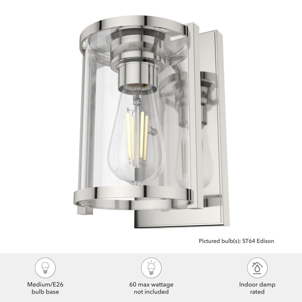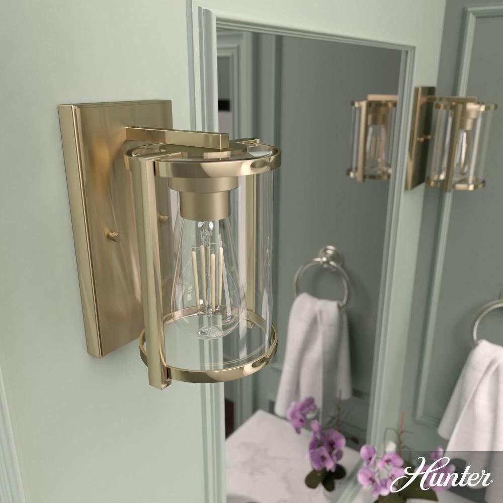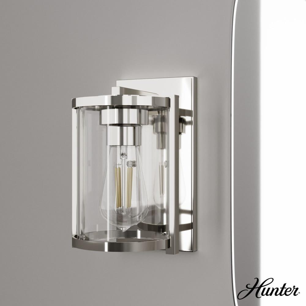 Evoking subtle art deco detailing, the Astwood wall sconce offers an effortless and modern way to update your space. Simple and stunning, its also engineered for use in indoor spaces exposed to humidity like bathrooms. Its a welcome addition to our popular Astwood lighting and fan collections.Rated for indoor spaces exposed to humidityRequires 1 E26 bulbs. Bulbs not included.INDOOR-DAMP RATED: For use in indoor spaces exposed to humidity like bathrooms and laundry rooms.BULB RECOMMENDATION: Maximum 60 W per light bulb or equivalent LED bulb. Bulbs not included.PICTURED HERE: Match our image using E26 light bulbs.COORDINATING COLLECTION: Works with Astwood ceiling fan collectionWARRANTY: One-year limited warranty backed by the trusted experts at Hunter.