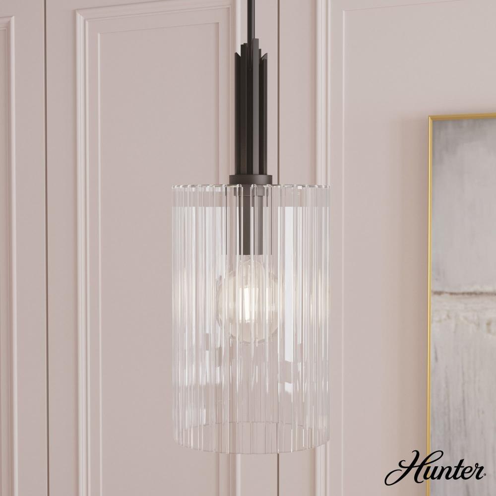 Have enchanted evenings as you entertain your guest under the lights of the Gatz pendant. Hang two or three over your kitchen island for a spectacular effect. The metal and fluted glass in a single pendant add a touch of glam to your space. You don't have to stop with this one! The Gatz collection has a fixture that will fit any room.MADE FOR INDOORS: For use in indoor spaces like kitchens, bedrooms, living rooms, dining rooms, and entryways.BULB RECOMMENDATION: Maximum 60 W per light bulb or equivalent LED bulb. Bulbs not included.PICTURED HERE: Match our image using A19 Standard light bulbs.CUSTOMIZABLE HANGING OPTIONS: With the minimum required downrod, the hanging length is 32.25 inches. When using all of the included downrod, the maximum hanging length is 80 inches.WARRANTY: One-year limited warranty backed by the trusted experts at Hunter.