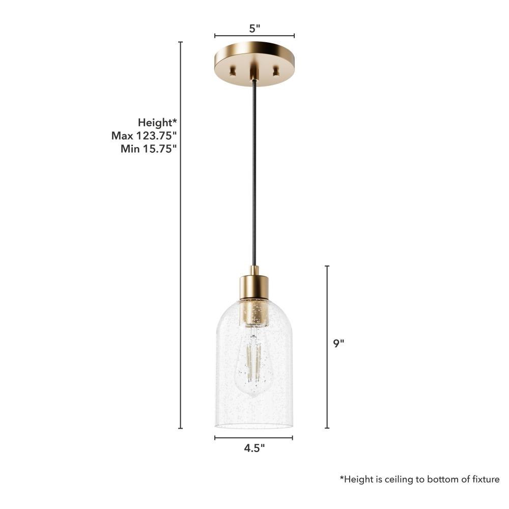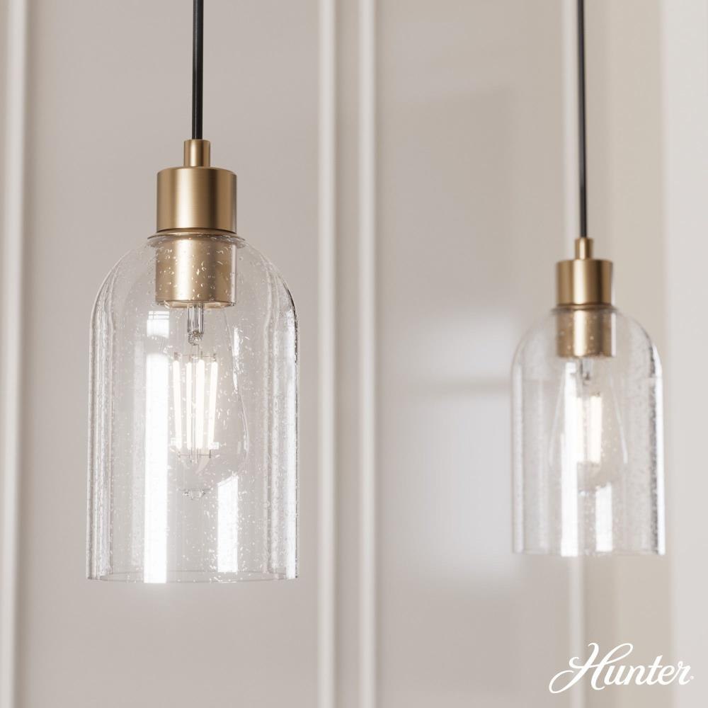 There’s something simple yet grand about the Lochemeade. Minimalist and streamlined, this modern mini pendant features clear glass dome shades that leave an impression without being overpowering. With shade finishes options like clear seeded glass and smoked glass, it’s versatile in a variety of style spaces. Mix and match with other fixtures from this collection or from our ceiling fan designs.MADE FOR INDOORS: For use in indoor spaces like kitchens, bedrooms, living rooms, dining rooms, and entryways.BULB RECOMMENDATION: Maximum 60 W per light bulb or equivalent LED bulb. Bulbs not included.PICTURED HERE: Match our image using ST64 Edison light bulbs.CUSTOMIZABLE HANGING OPTIONS: With the minimum required cord, the hanging length is 15.75 inches. When using all of the included cord, the maximum hanging length is 123.75 inches.WARRANTY: One-year limited warranty backed by the trusted experts at Hunter.