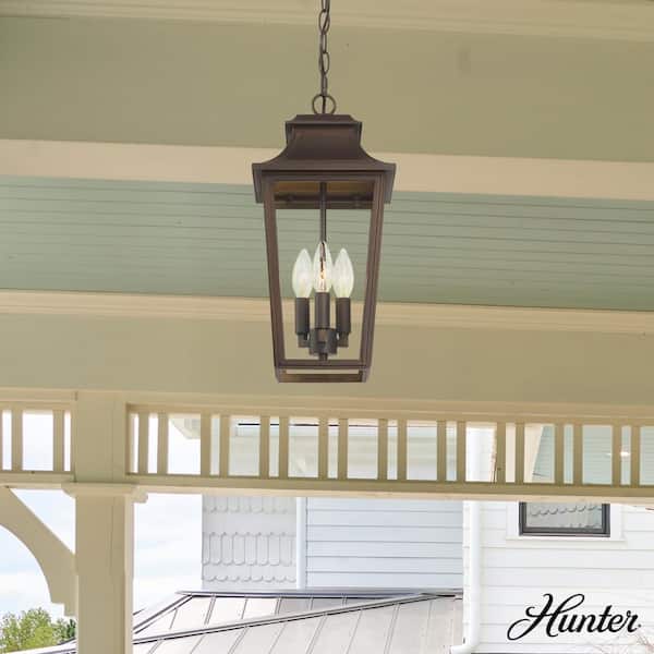 Hunter Spring Cove 3 Light Matte Bronze Rectangle Hardwired Outdoor Lighting for Foyer / Entry Way