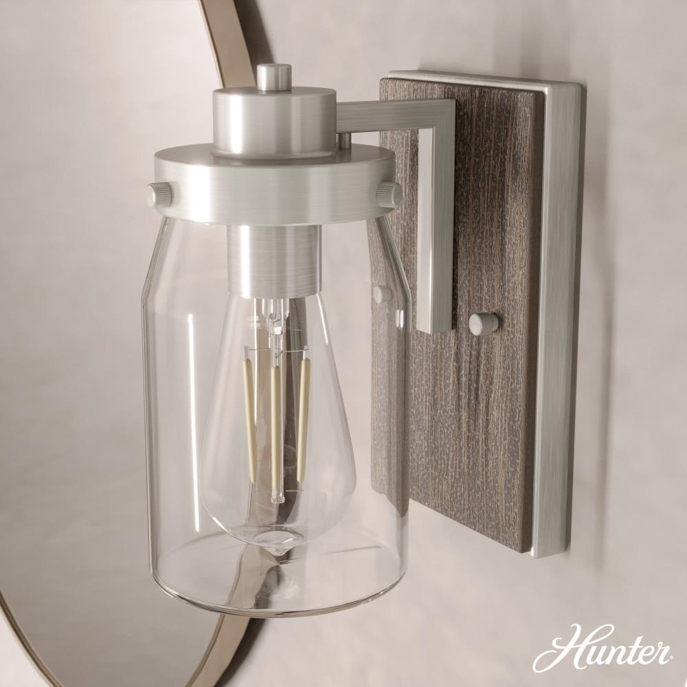 Elevate your farmhouse interior. Bring accent lighting to your favorite modern farmhouse spaces with the Devon Park’s elegantly rustic wall sconce. Whether you’re looking to accentuate your shiplap walls or enhance your room’s ambiance with layered lighting, the Devon Park’s distressed design makes an impact. Mix and match with other fixtures from this collection or from our ceiling fan designs.. Rated for indoor spaces exposed to humidity. Requires 1 E26 bulbs. Bulbs not included.. INDOOR-DAMP RATED: For use in indoor spaces exposed to humidity like bathrooms and laundry rooms.. BULB RECOMMENDATION: Maximum 60 W per light bulb or equivalent LED bulb. Bulbs not included.. PICTURED HERE: Match our image using ST64 Edison light bulbs.. COORDINATING COLLECTION: Works with Devon Park ceiling fan collection. WARRANTY: One-year limited warranty backed by the trusted experts at Hunter.