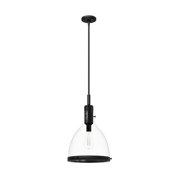 Van Nuys 60-Watt 1 Light Matte Black Island Pendant Light with Clear Glass Shade, Bulb Not Included
