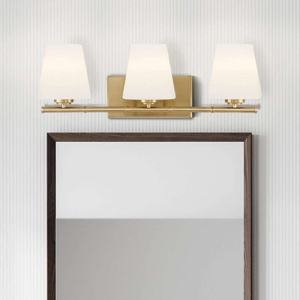 Freshen up your space with the Fauna Grove 3 Light Medium Vanity. Inspired by bamboo and embracing biophilic design, this transitional fixture features elegant cone-shaped shades that bring a natural, serene ambiance to bathrooms and dressing rooms. The Fauna Grove vanity blends organic inspiration with modern style, offering a soft, inviting glow that enhances your everyday routine. Its thoughtful design introduces a fresh, nature-inspired aesthetic to your space, delivering both function and a calming, elevated look.
