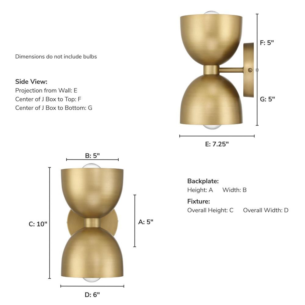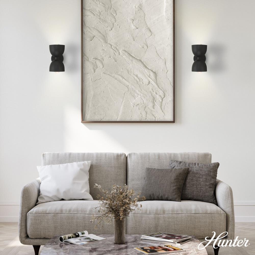Embrace modern style with the Erling 2 Light Small Sconce, designed to perfectly complement the Erling fan. This sleek fixture features simple metal dome shades that bring a clean, streamlined look to any room. With its organic modern style, the Erling sconce blends natural elements with contemporary design, creating a warm and welcoming ambiance. Ideal for hallways, bathrooms, or as accent lighting, this versatile sconce offers a soft, inviting glow and a touch of effortless style to your home. Plus, its flexible design allows for horizontal or vertical installation, providing even more styling options.MODERN: Clean lines, minimal, natural.MADE FOR INDOORS: For use in indoor spaces like kitchens bedrooms, living rooms, dining rooms, and entryways.BULB RECOMMENDATION: Maximum 60 W (E26) per light bulb or equivalent LED bulb. Bulbs not included.MODERN: The clean lines of the modern style uses a monochromatic color palette the inspires with clean lines, minimalism, natural materials, and natural light.MODERN DOME DESIGN: Features a clean and timeless metal dome design that adds a modern, minimalist touch to any room while providing focused, practical lighting.COORDINATING COLLECTION: Works with Erling ceiling fan collection.FITS YOUR WALL: Measures 6 wide by 10 high, with an 7.25 wall projection and a 5 backplate height—all in inches.WARRANTY: One-year limited warranty backed by the trusted experts at Hunter.