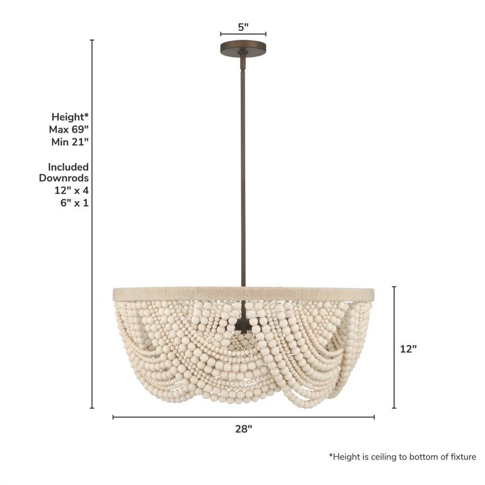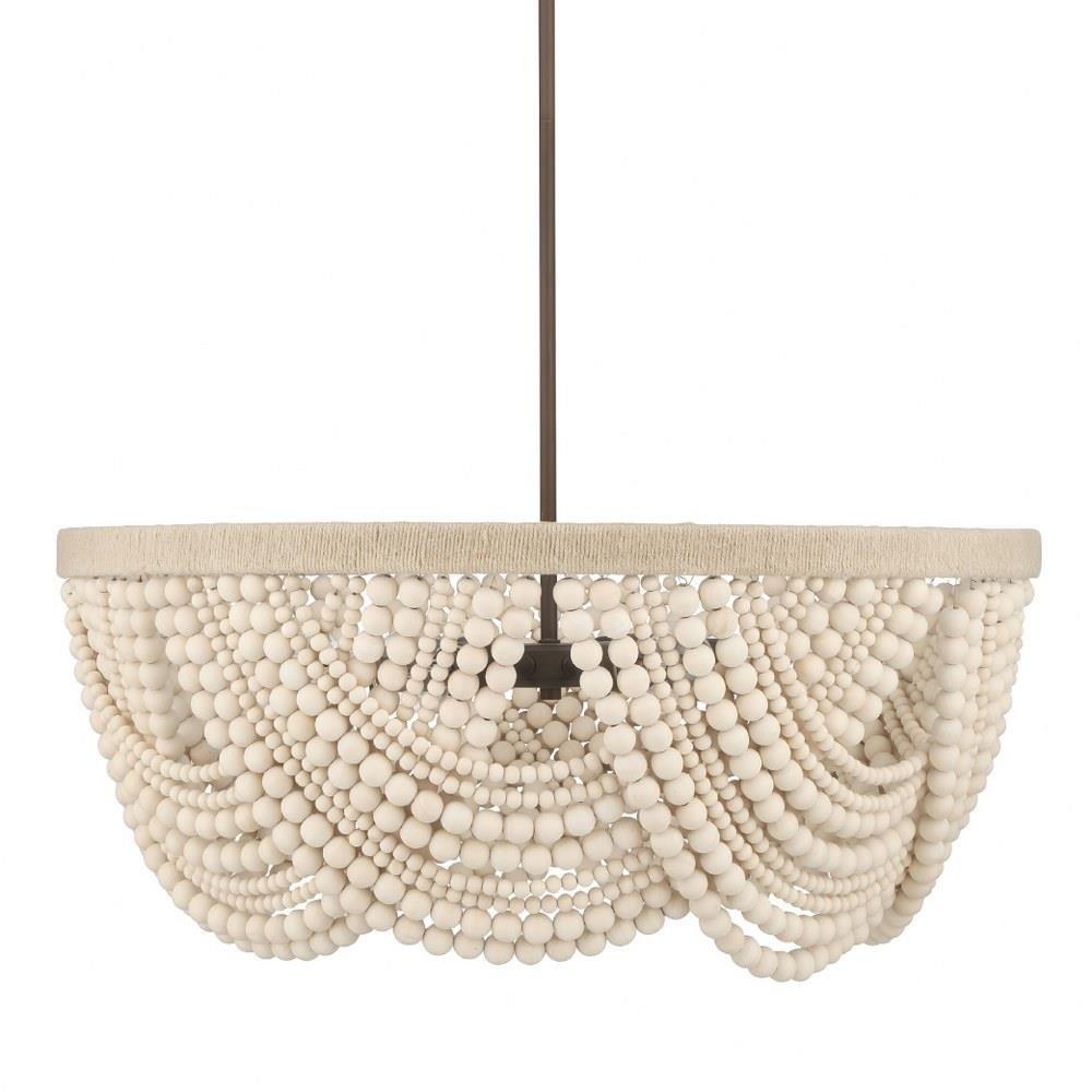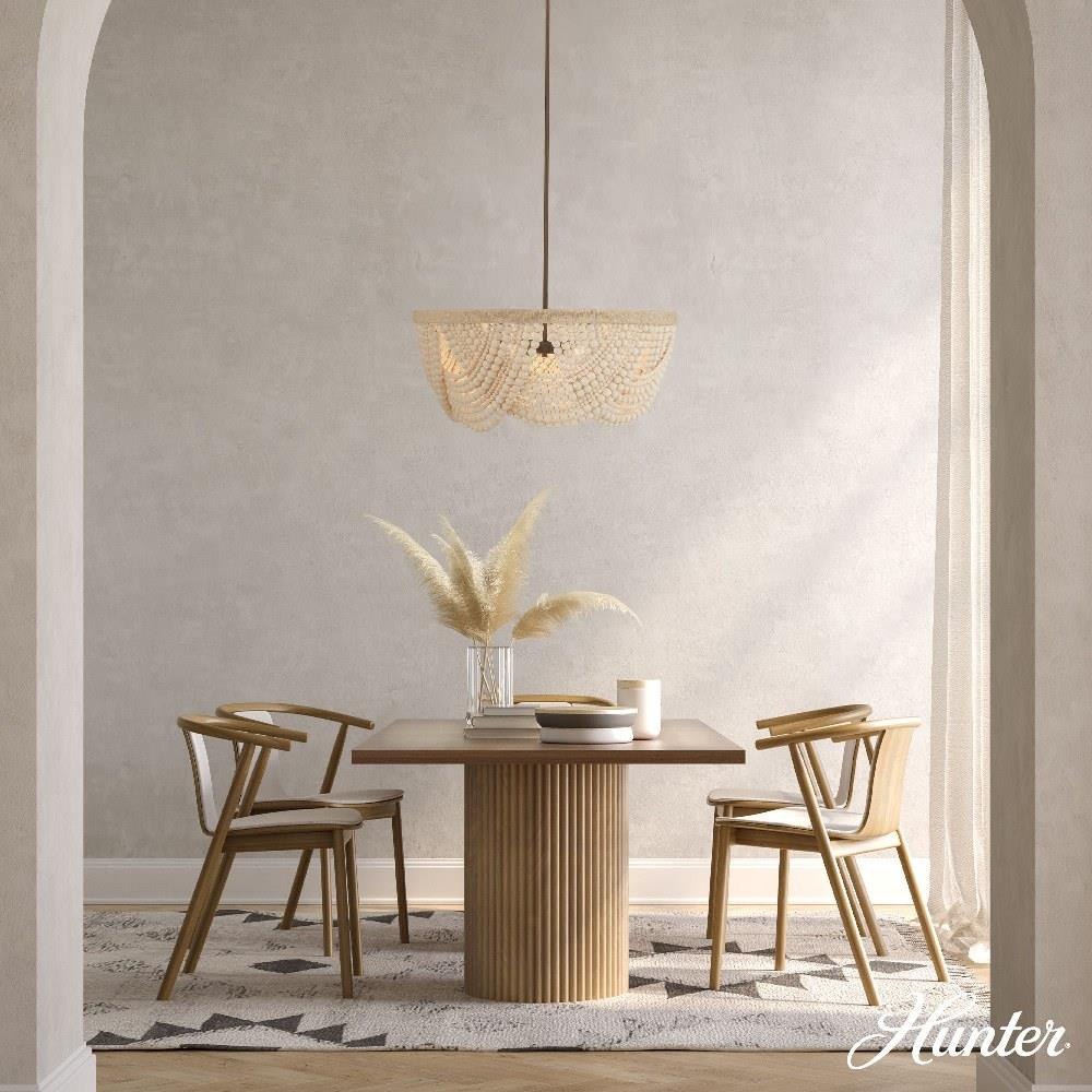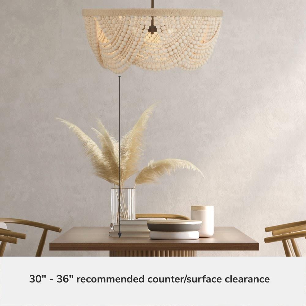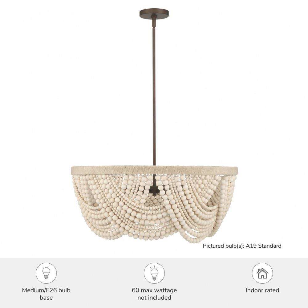 Add the warmth of the Autumndale 6 Light Medium 28 Inch Chandelier to your dining room or large table setting, where organic materials meet timeless design. Draping strands of wood beads create layered texture and artisan charm, while natural wood tones and twine-wrapped metal accents add a grounded, relaxed aesthetic. The transitional silhouette blends minimal elegance with a soft, modern feel—perfect for spaces that need a touch of nature-inspired sophistication. It’s an effortless way to elevate your everyday lighting.