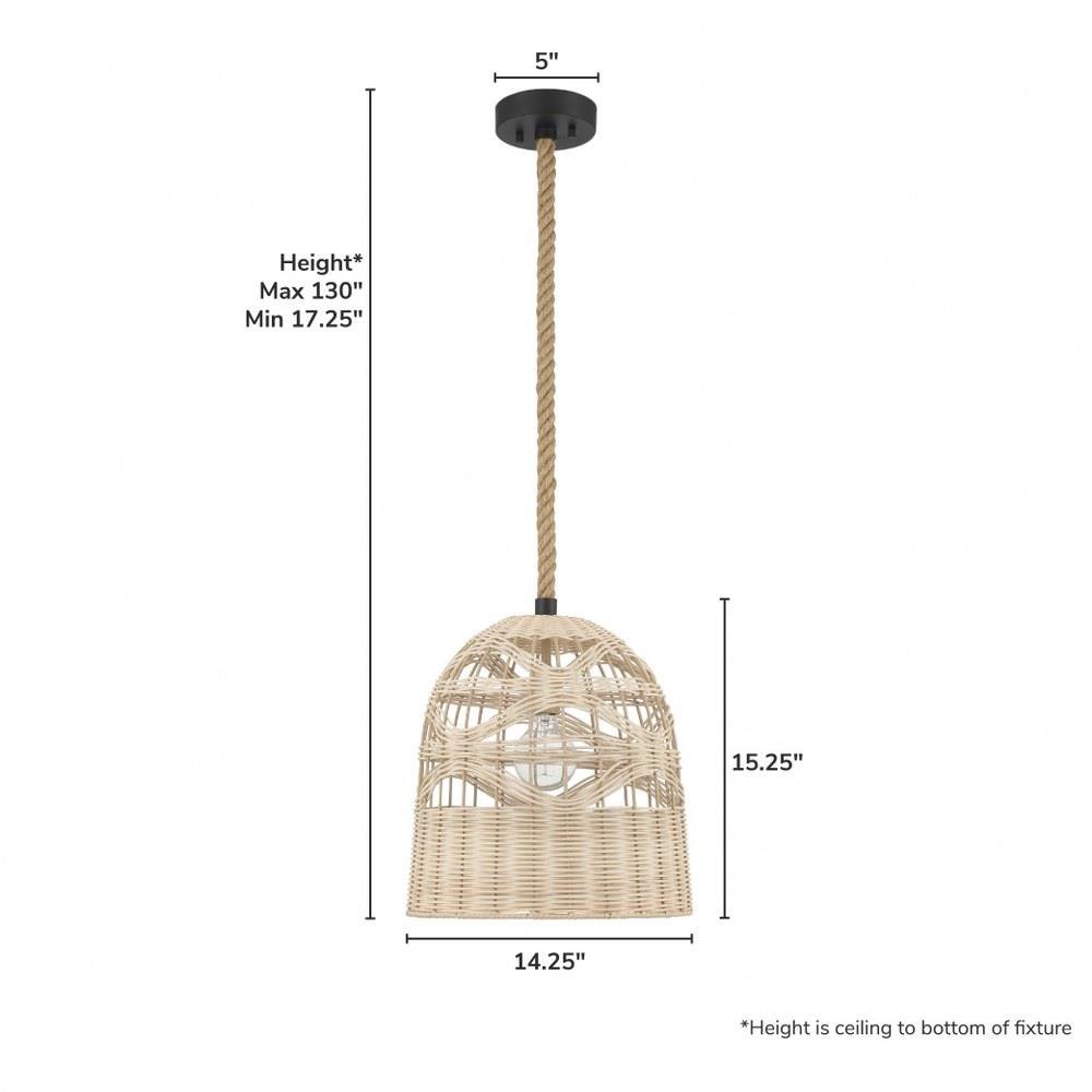 Bring earthy elegance to your space with the Baskel 1 Light Large 14 Inch Pendant. Featuring a handwoven rattan shade and rope-hung cord, this pendant light creates a basket-inspired silhouette that brings natural texture and artisan charm to any room. Its transitional design blends modern minimalism with organic warmth—perfect for kitchens, dining areas, or entryways. With customizable hanging options, the Baskel Pendant adapts to your space while casting soft, inviting light. Ideal for relaxed, contemporary interiors that celebrate style and comfort.