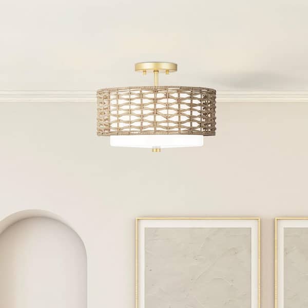 Hunter Laila 14 In 2 Light Luxe Gold Drum Flush Mount Lighting for Hallway