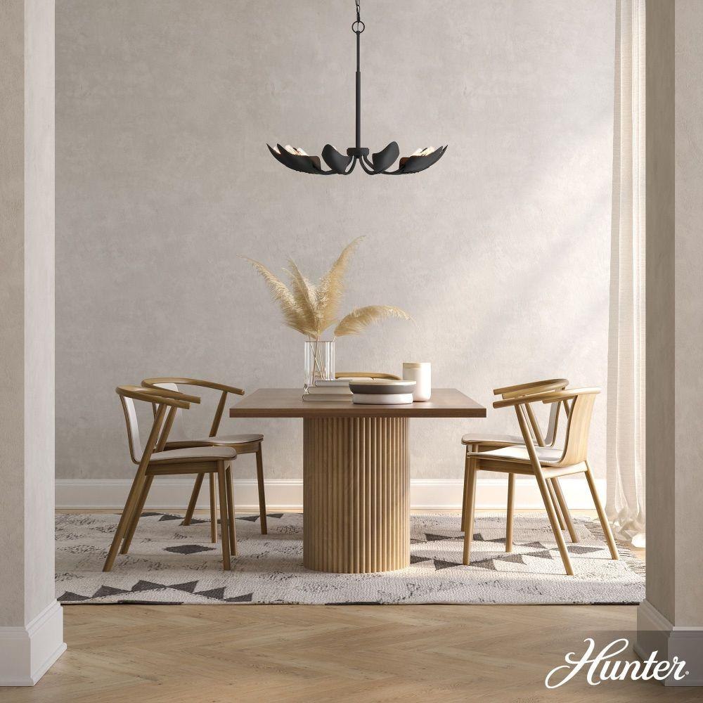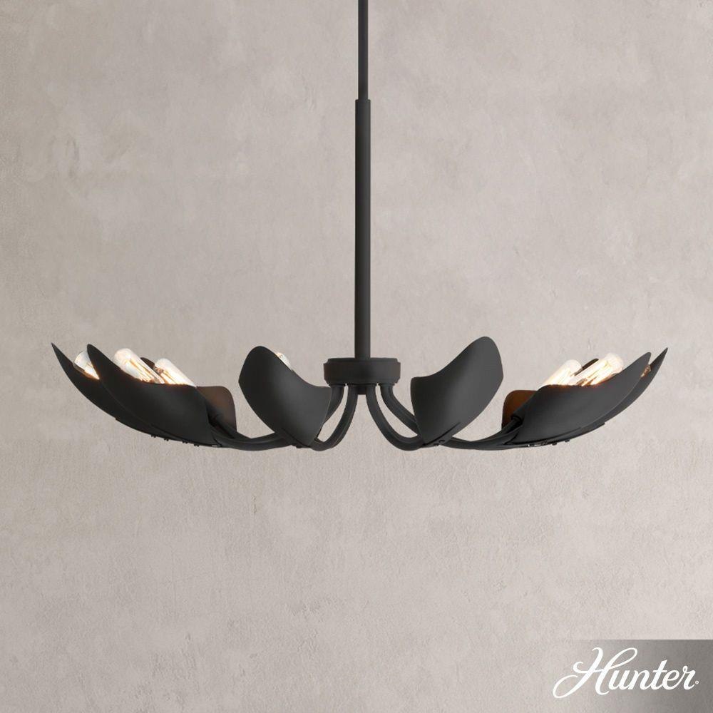 Juxtapose beauty and function with the Juneway 10 Light Medium Chandelier, designed to bring balance and charm to any interior. Perfect for kitchens, dining rooms, living spaces, and entryways, its transitional style blends smooth, elegant lines with adaptable minimalism. The nature-inspired design features organic shapes and textures that add warmth and a grounded feel to your décor. Ten bulbs deliver full-room brightness, creating a naturally well-lit atmosphere ideal for larger spaces. With its blend of form, function, and timeless appeal, the Juneway transforms any room into an inviting, light-filled retreat.MADE FOR INDOORS: For use in indoor spaces like kitchens, bedrooms, living rooms, dining rooms, and entryways.BULB RECOMMENDATION: Maximum 60 W per light bulb or equivalent LED bulb. Bulbs not included.TRANSITIONAL: The transitional style celebrates natural light and a relaxed feel with smooth, blending details that create warm yet modern spaces with the best of both worlds; elegant, minimal and adaptable.FULL-ROOM BRIGHTNESS: Ten bulbs provide wide-spread illumination for a naturally well-lit feel, ideal for larger rooms or multitasking spaces.NATURE-INSPIRED DESIGN: Organic lines and natural textures echo the outdoors, adding a grounded, calming element that softens and warms the overall look.CUSTOMIZABLE HANGING OPTIONS: With the minimum required cord/stem, the hanging length is 24 inches. When using all of the included extensions, the maximum hanging length is 96.75 inches.WARRANTY: One-year limited warranty backed by the trusted experts at Hunter.