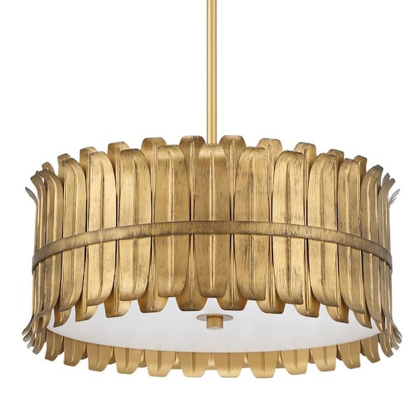 Hunter Valdaz 3 Light Brushed Luxe Gold Drum Pendant Lighting for Kitchen