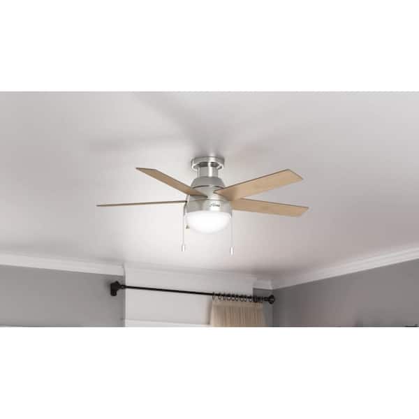 Anslee 46 in. Indoor Low Profile Brushed Nickel Ceiling Fan with Light