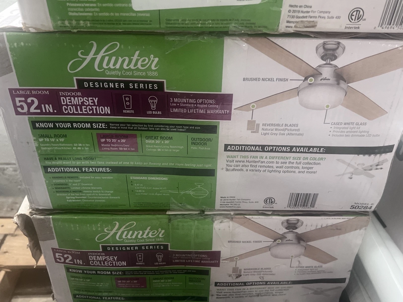 Hunter Dempsey 52 Inch Brushed Nickel Ceiling Fan with Light Kit Model: 50284
