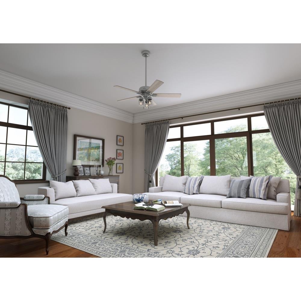The Hartland chandelier inspired ceiling fan has a revised classic look that looks beautiful in casual, indoor spaces. The clear seeded glass and included Edison LED light bulbs create a stunning look. Add a subtle pop of color with the Indigo Blue fan or complement other fixtures and accents in your farmhouse style room with the Noble Bronze or Matte Silver finish. Create a cohesive look in your space by pairing the Hartland ceiling fan with the coordinating light fixtures in its collection.