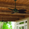 The Bayview outdoor ceiling fan is damp-rated for use in covered outdoor spaces as well as indoor spaces exposed to moisture and humidity, making it great for covered patios and bathrooms. The palm leaf-shaped blades add a unique look in casual tropical and Mid-Century Modern spaces.