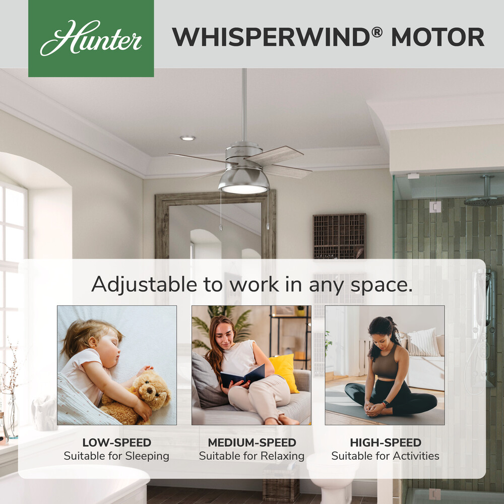- Reversible, 3-speed WhisperWind motor delivers ultra-powerful air movement with whisper-quiet performance so you get the cooling power you want without the noise you don't