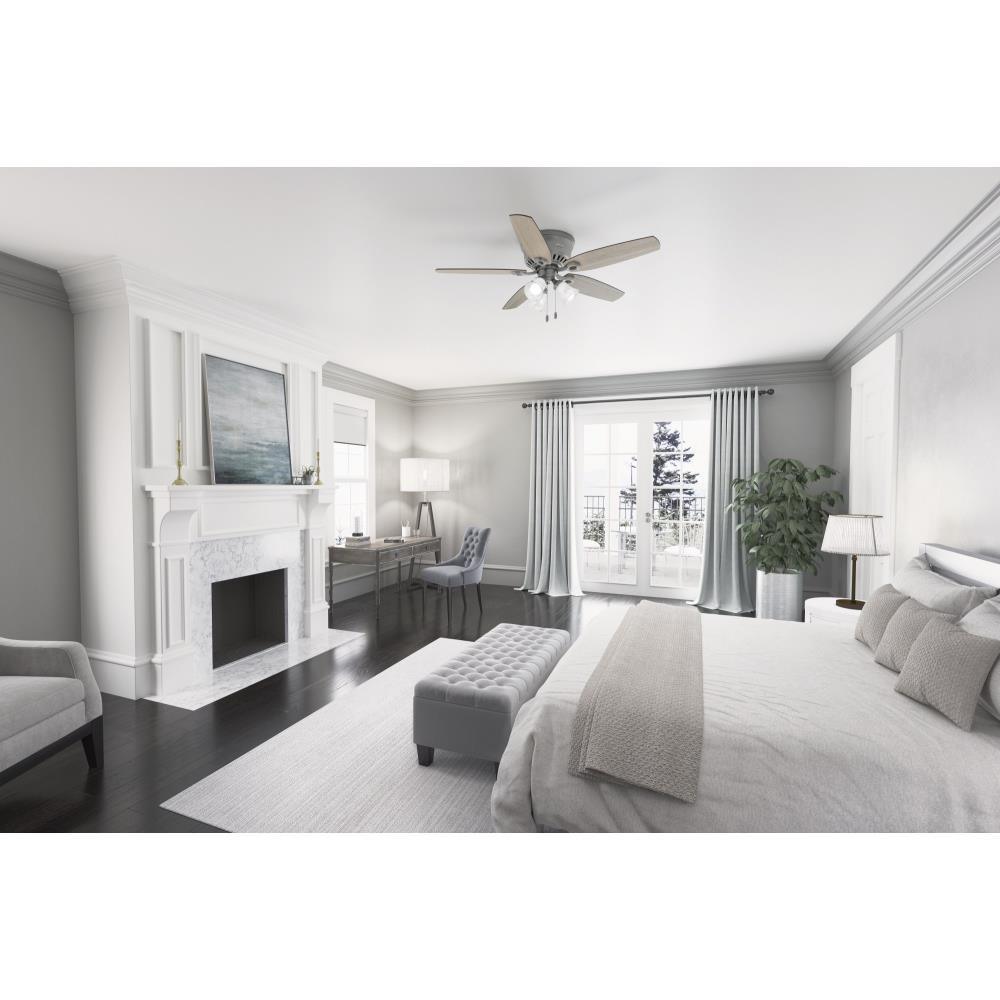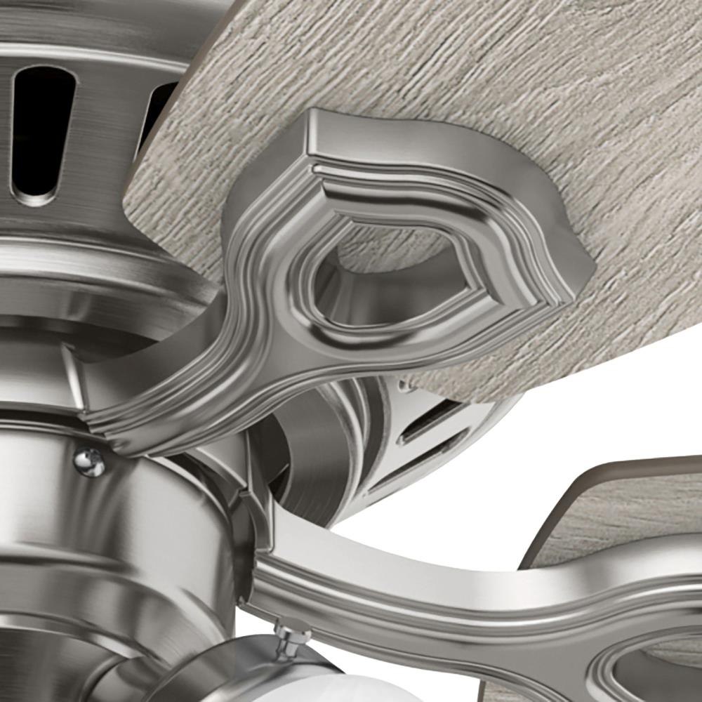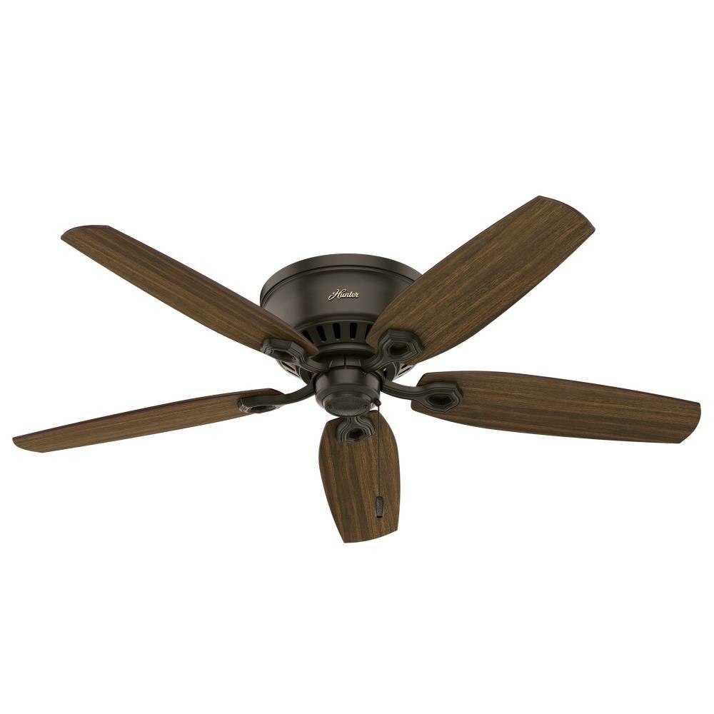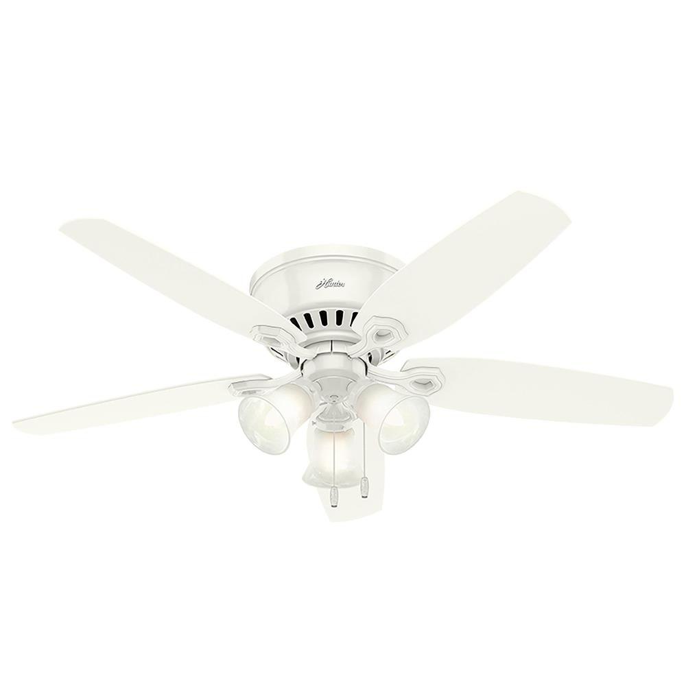 With a 52-inch blade span and low-profile design, the casual, traditional style of the Builder Low Profile will complement large rooms in your home without overpowering them. A mainstay in the Hunter product line, this low-profile ceiling fan with lights features three-speed WhisperWind motor technology to deliver quiet and ultra-powerful performance.