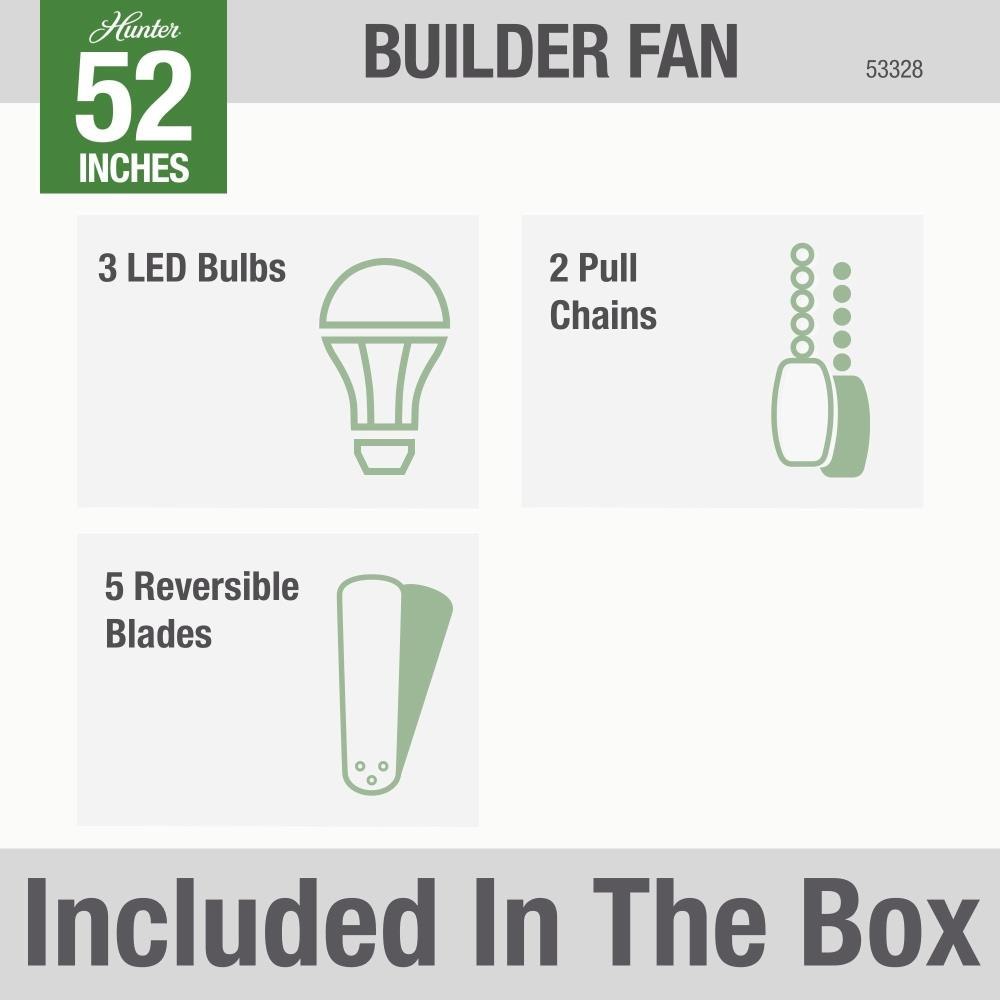 Hunter Fans - 51112 - Builder 52 Inch Low Profile Ceiling Fan with LED Light Kit and Pull Chain