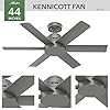 Product Summary: Hunter 44 inch Outdoor or Indoor Ceiling Fan No Light - Ceiling Fan without Light, For Patio, Porch, Garage, or Living Room, Standard Mount, 6 Blades, Wall Control - Kennicott 51115, Matte Silver