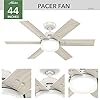 Product Summary: Hunter 44 inch Indoor Ceiling Fan with LED Light and Remote Control - White Ceiling Fan, Standard Mount, 6 Blades, For Bedroom, Living Room, or Kitchen, Quiet - Pacer 51205, Fresh White