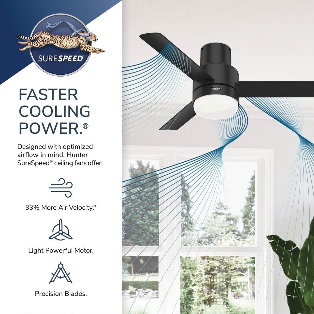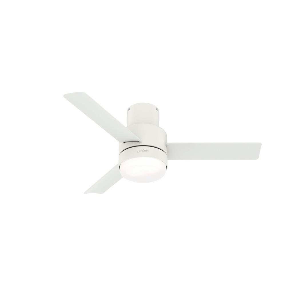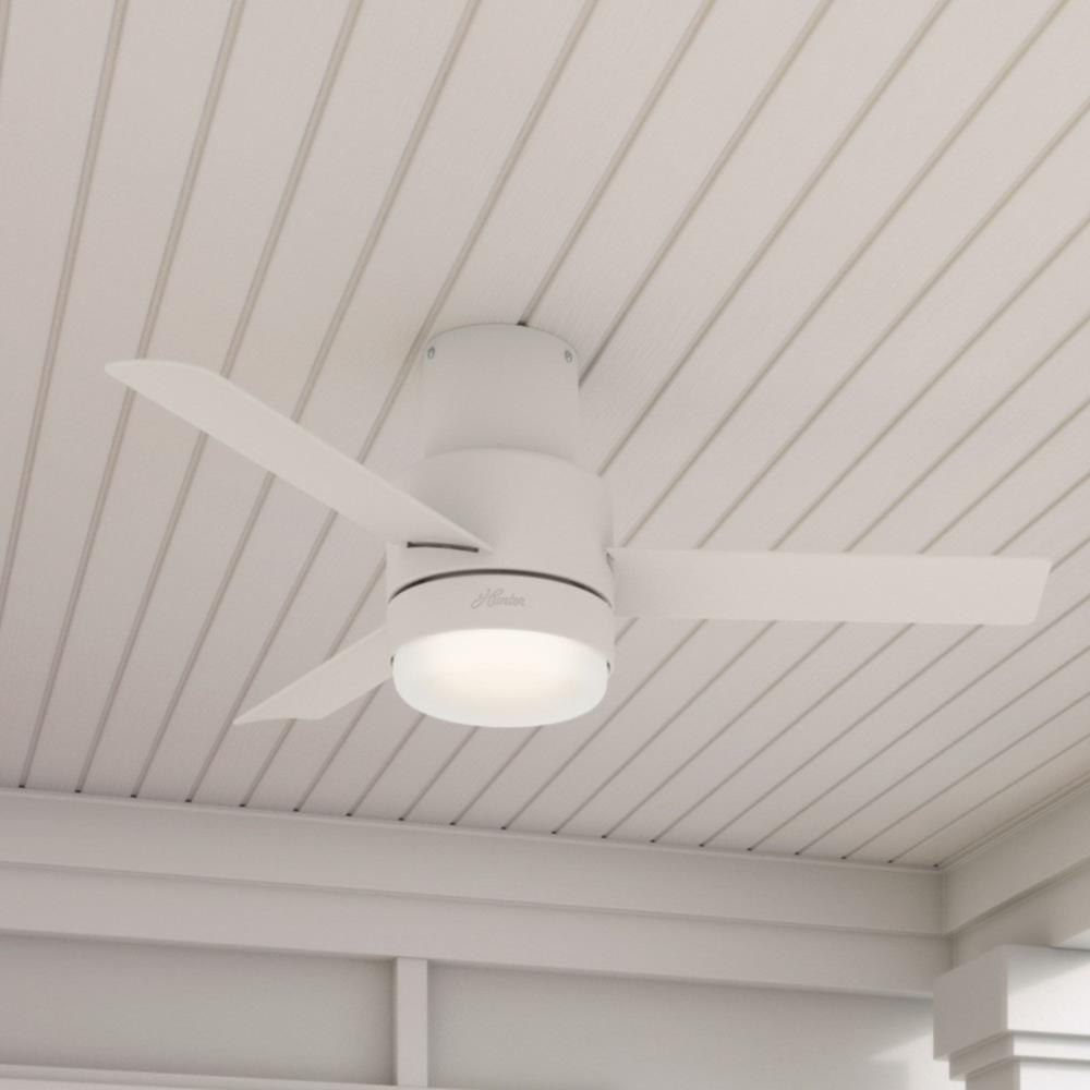 The Gilmour outdoor ceiling fan features a simple design and clean lines to complement your casual, modern covered porches and patios. The Matte White finish adds a bright, clean look while the Flat Matte Black finish adds a bold one. Use this fan indoors too! This small ceiling fan fits close to the ceiling to provide optimal performance in rooms with low ceilings without sacrificing style or head room.