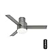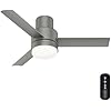 Hunter 44 inch Outdoor or Indoor Ceiling Fan with LED Light and Remote Control - Low Profile Mount Ceiling Fan, 3 Blades, For Patio, Porch, Garage, or Living Room, Quiet - Gilmour 51475, Matte Silver