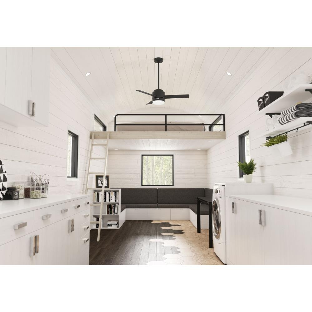 The Gilmour outdoor ceiling fan features a simple design and clean lines to complement your casual, modern covered porches and patios. The Matte Black finish adds a modern, clean look while the Matte White finish adds a bright, bold one. Use this fan indoors too! This small ceiling fan fits close to the ceiling to provide optimal performance in rooms with low ceilings without sacrificing style or head room.