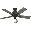 Hunter 44 inch Indoor Ceiling Fan with LED Lights - Black Ceiling Fan with Pull Chain, For Bedroom or Living Room, Standard Mount, No Remote, 5 Blades, Includes Bulbs - Crystal Peak 52351, Matte Black