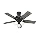 • Hunter 44 inch Indoor Ceiling Fan with LED Lights - Black Ceiling Fan with Pull Chain, For Bedroom or Living Room, Standard Mount, No Remote, 5 Blades, Includes Bulbs - Crystal Peak 52351, Matte Black