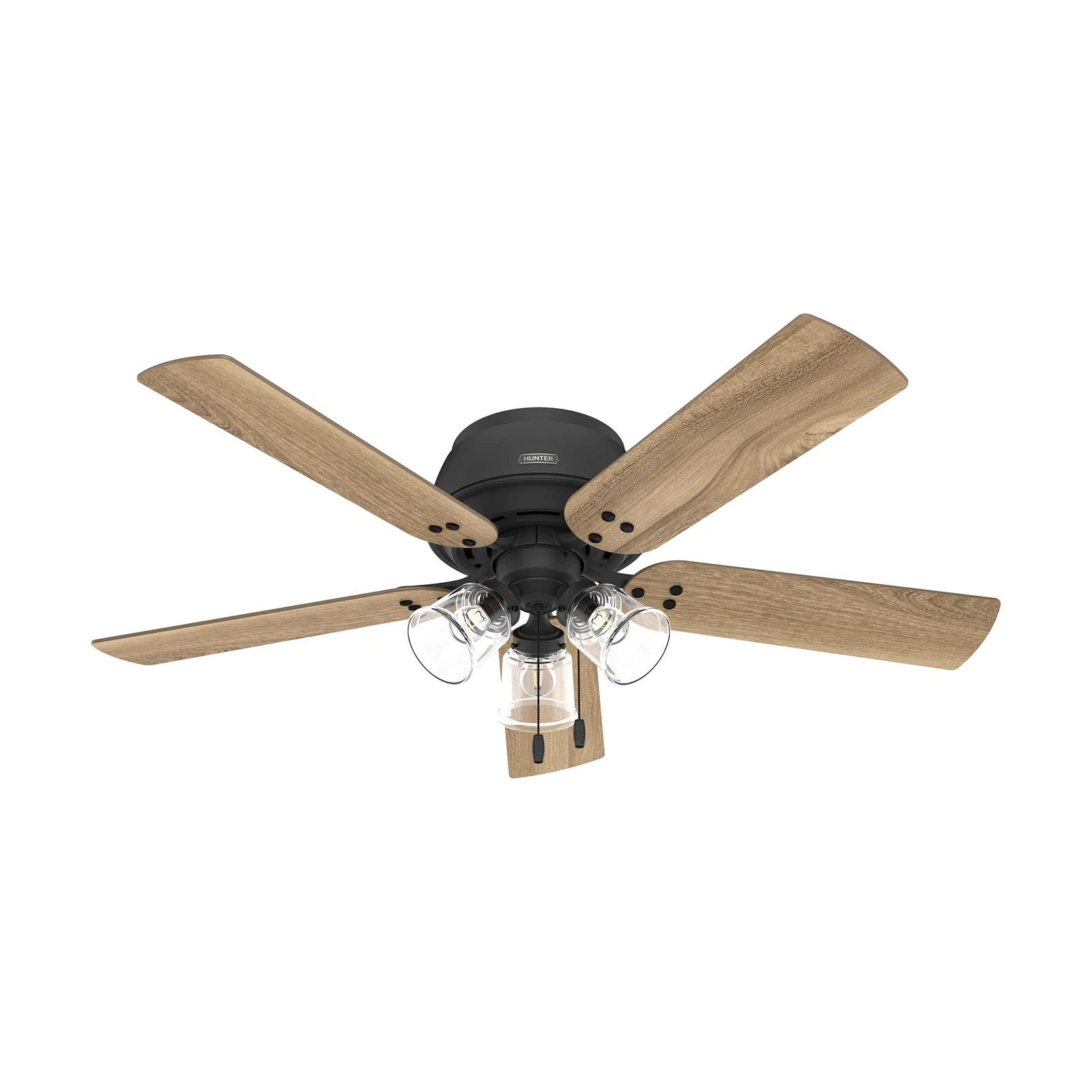 Hunter 52 inch Indoor Ceiling Fan with LED Lights - Black Ceiling Fan with Pu...