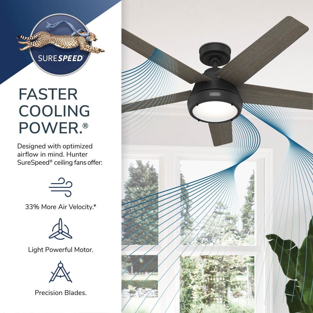 The Burroughs is an all-around cool fan. Its organic modern design is sleek but features subtle geometric inspirations and wood grain blade finishes for a balanced look. This modern ceiling fan is built with our SureSpeed® Guarantee, delivering optimized, high-speed airflow you'll appreciate in your small spaces during warmer months. Multiple finishes and affordable prices make this fan an easy choice.