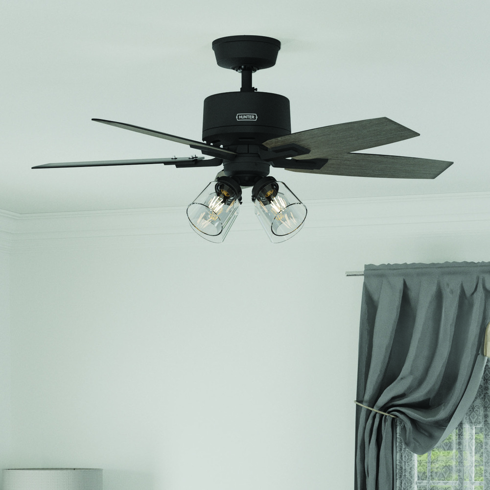 Hunter® HunterExpress® Gatlinburg 44" Matte Black Indoor 4-Light Ceiling Fan with Remote