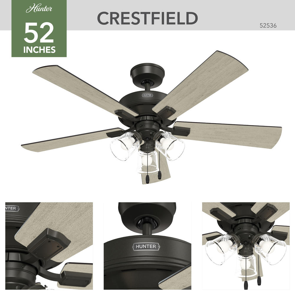Hunter® HunterExpress® Crestfield 52" Noble Bronze Indoor 3-Light Ceiling Fan