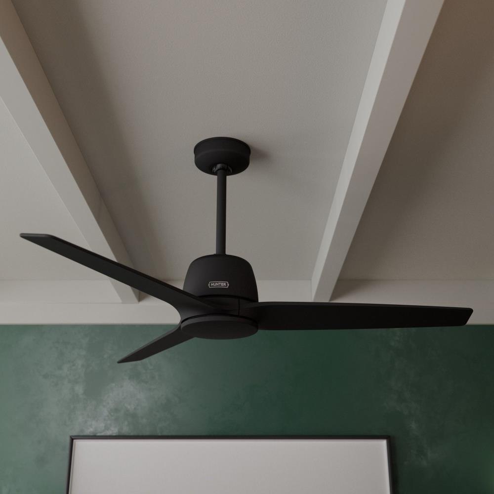 Exclusive SureSpeed® Guarantee delivers a high-velocity fan with airflow optimized for ultimate high-speed cooling Reversible, 3-speed WhisperWind® motor delivers ultra-powerful air movement with whisper-quiet performance so you get the cooling power you want without the noise you don’t™ 3 Matte Black blades included Installer's Choice® two-position mounting system allows for standard or angled mounting Includes 3'' downrod to ensure proper distance from the ceiling and optimize air movement Includes Handheld Remote for easy speed and lighting adjustment from anywhere in the room Limited Lifetime Motor Warranty Built with our SureSpeed® Guarantee to deliver faster airflow you can feel Rated for indoor use only Bulbs not included Handheld remote included AIRFLOW YOU FEEL: Built with our SureSpeed® Guarantee to deliver over 33% higher air velocity than leading competitors* while maintaining quiet, wobble-free performance. PRE-INSTALLED RECEIVER: Control receiver built into the fan. One less step for installation. WHISPER-QUIET MOTOR: 3-speed, WhisperWind™ reversible motor for optimal performance in summer and winter. LARGE ROOM FAN: Ideal size for spaces like living rooms and bedrooms. STANDARD PROFILE MOUNTING: 3 inch downrod included. COMPATIBLE ACCESSORIES: Works with Hunter and Casablanca accessories, not including Hunter Original® accessories WARRANTY: Limited Lifetime Motor Warranty backed by the only company with over 135 years in the fan business