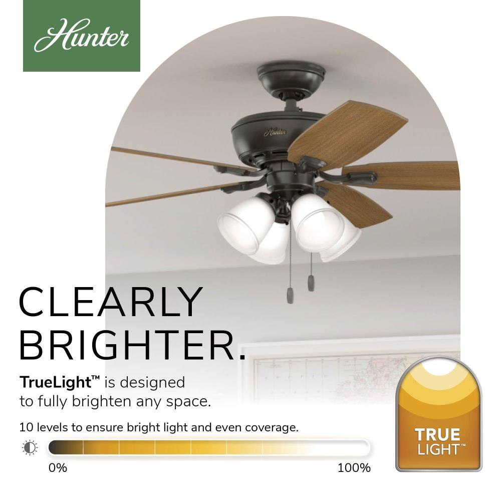 Available in three finishes, the Amberlin traditional ceiling fan with light is a great fit in casual, transitional spaces. This updated classic boasts a three-speed WhisperWind motor to deliver ultra-powerful air movement and whisper-quiet performance for cooling power without the noise. Featuring energy-efficient LED bulbs in a four-light fixture, this on-trend ceiling fan provides exceptional light in a room.