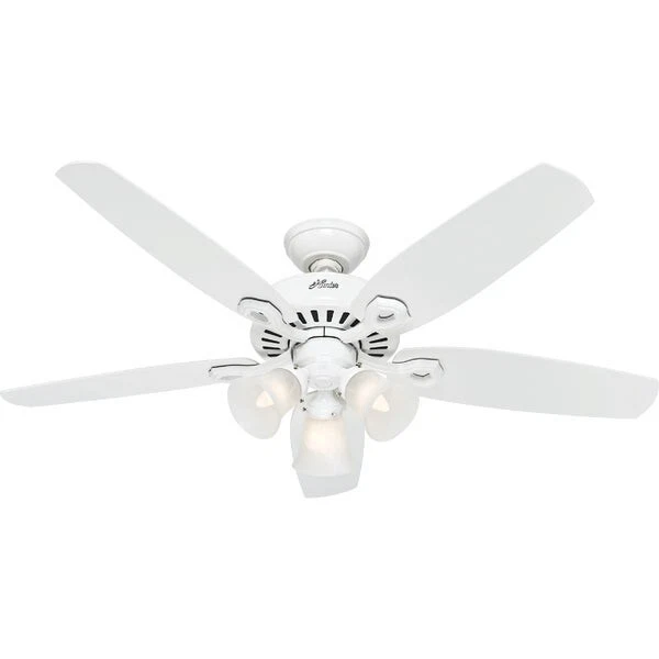 (1)-Hunter Builders Plus 52 In. White Ceiling Fan with Light Kit. Model: 53236