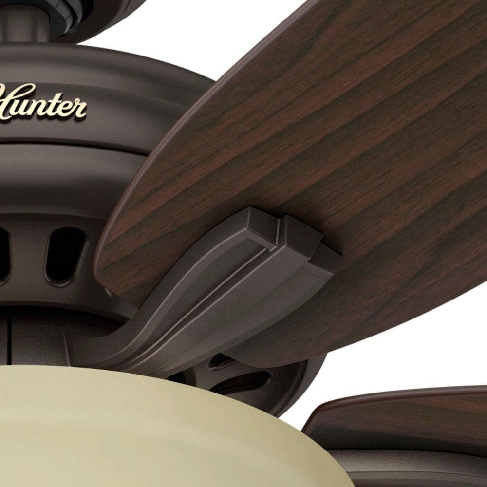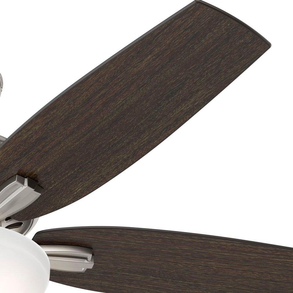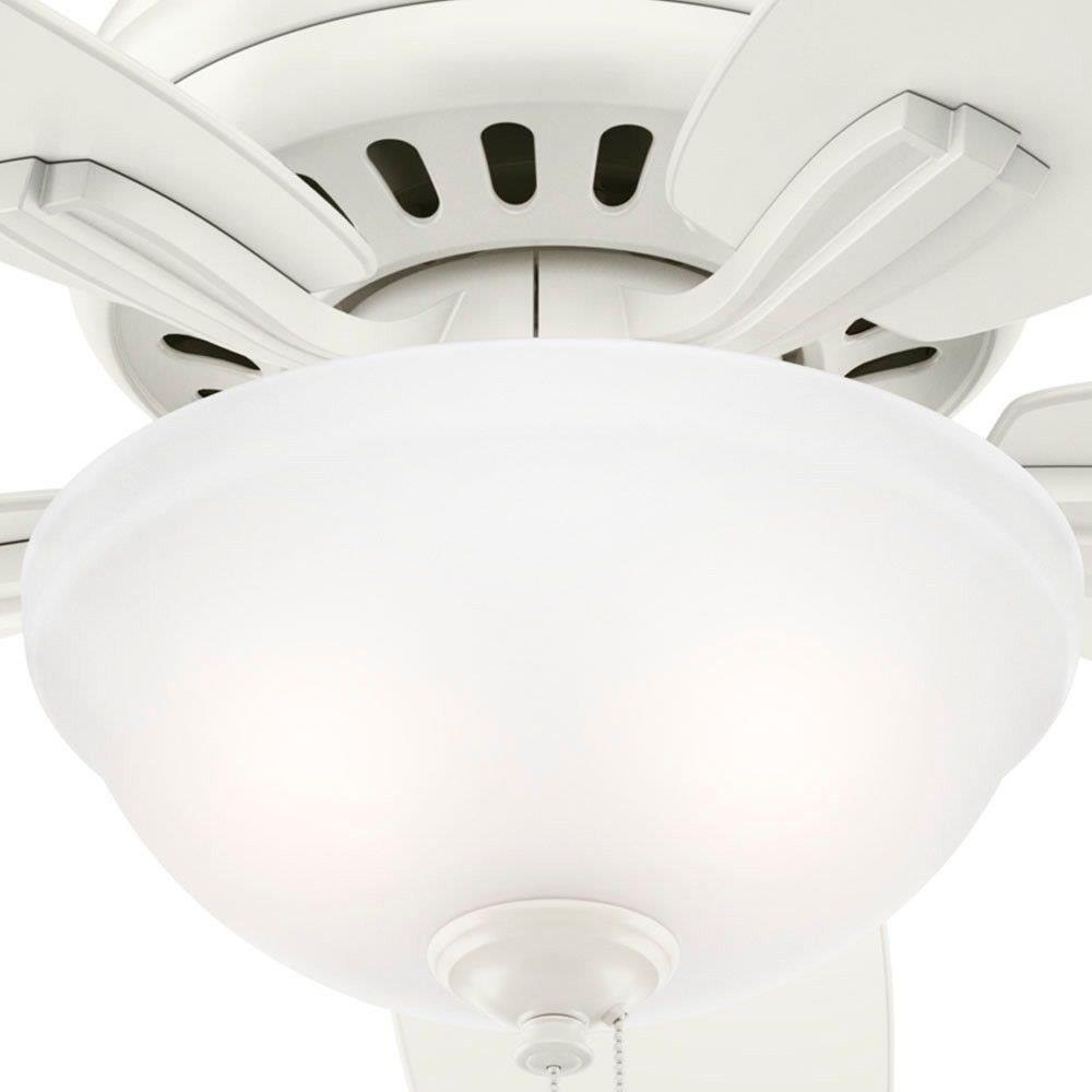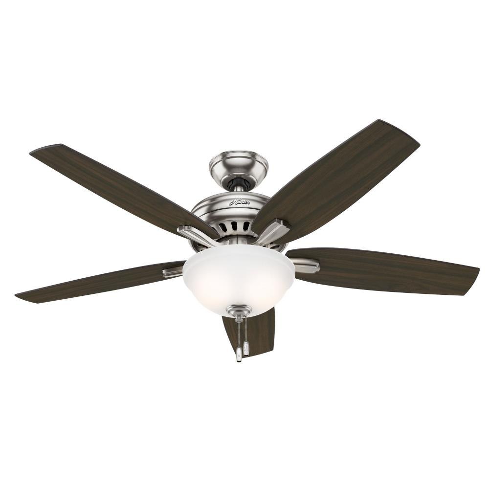 With its charming appearance, the Newsome low-profile ceiling fan with light will complement your casual design style. The clean line details throughout the fan body and blade irons work together to create a coherent design that will fit any standard or large room with a low ceiling. The handsome bowl light fixture provides your ideal ambiance while the 52-inch blades are powered by a three-speed WhisperWind motor delivering superior air movement and whisper-quiet performance so you get all the cooling power you want without the noise. The Newsome Collection offers you the freedom to choose from many different sizes, light kits, and other options to maintain a consistent look throughout every room in your home.