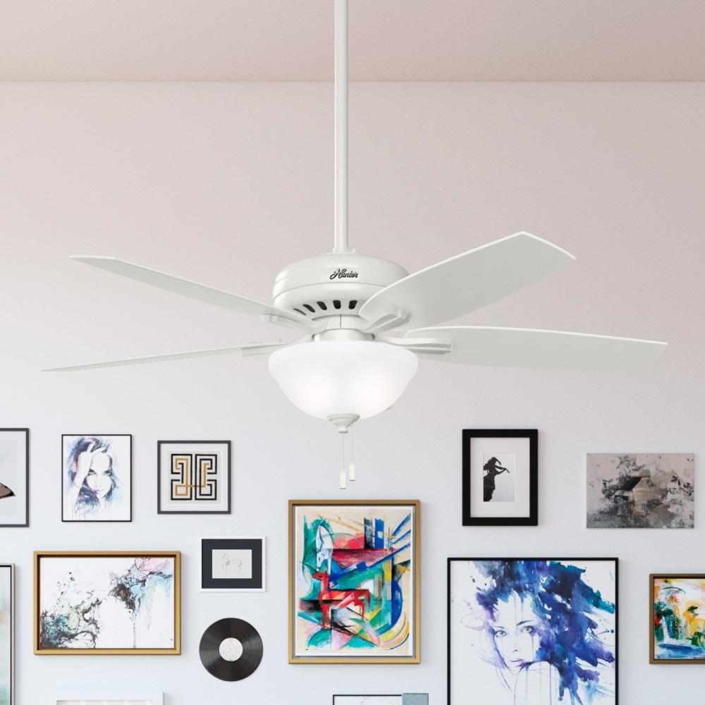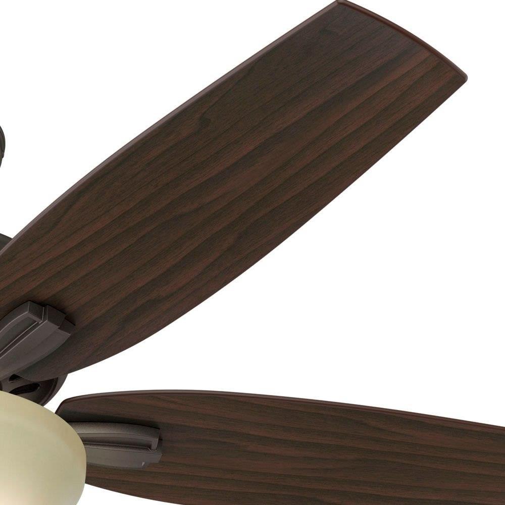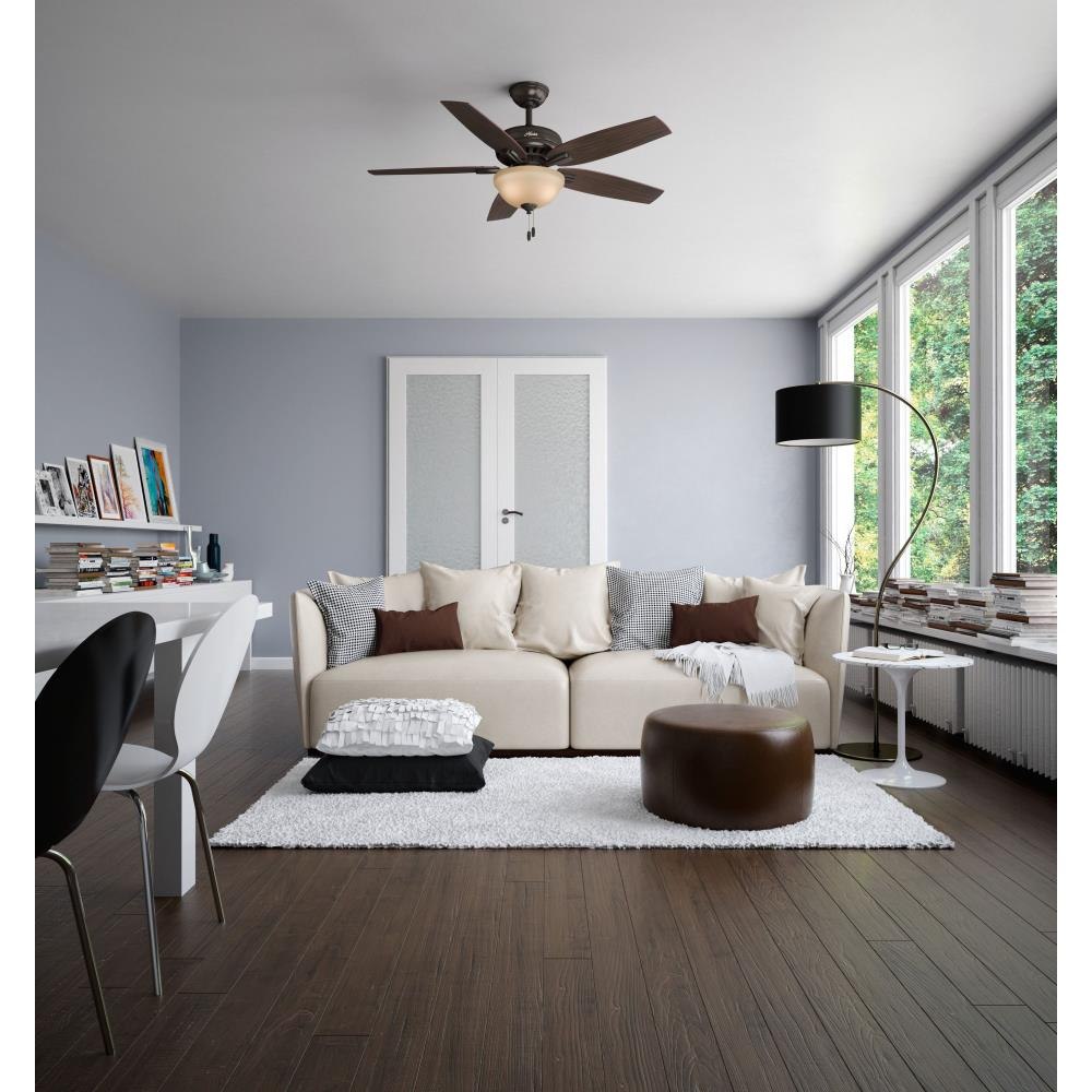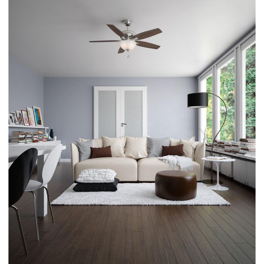 With its charming appearance, the Newsome low-profile ceiling fan with light will complement your casual design style. The clean line details throughout the fan body and blade irons work together to create a coherent design that will fit any standard or large room with a low ceiling. The handsome bowl light fixture provides your ideal ambiance while the 52-inch blades are powered by a three-speed WhisperWind motor delivering superior air movement and whisper-quiet performance so you get all the cooling power you want without the noise. The Newsome Collection offers you the freedom to choose from many different sizes, light kits, and other options to maintain a consistent look throughout every room in your home.