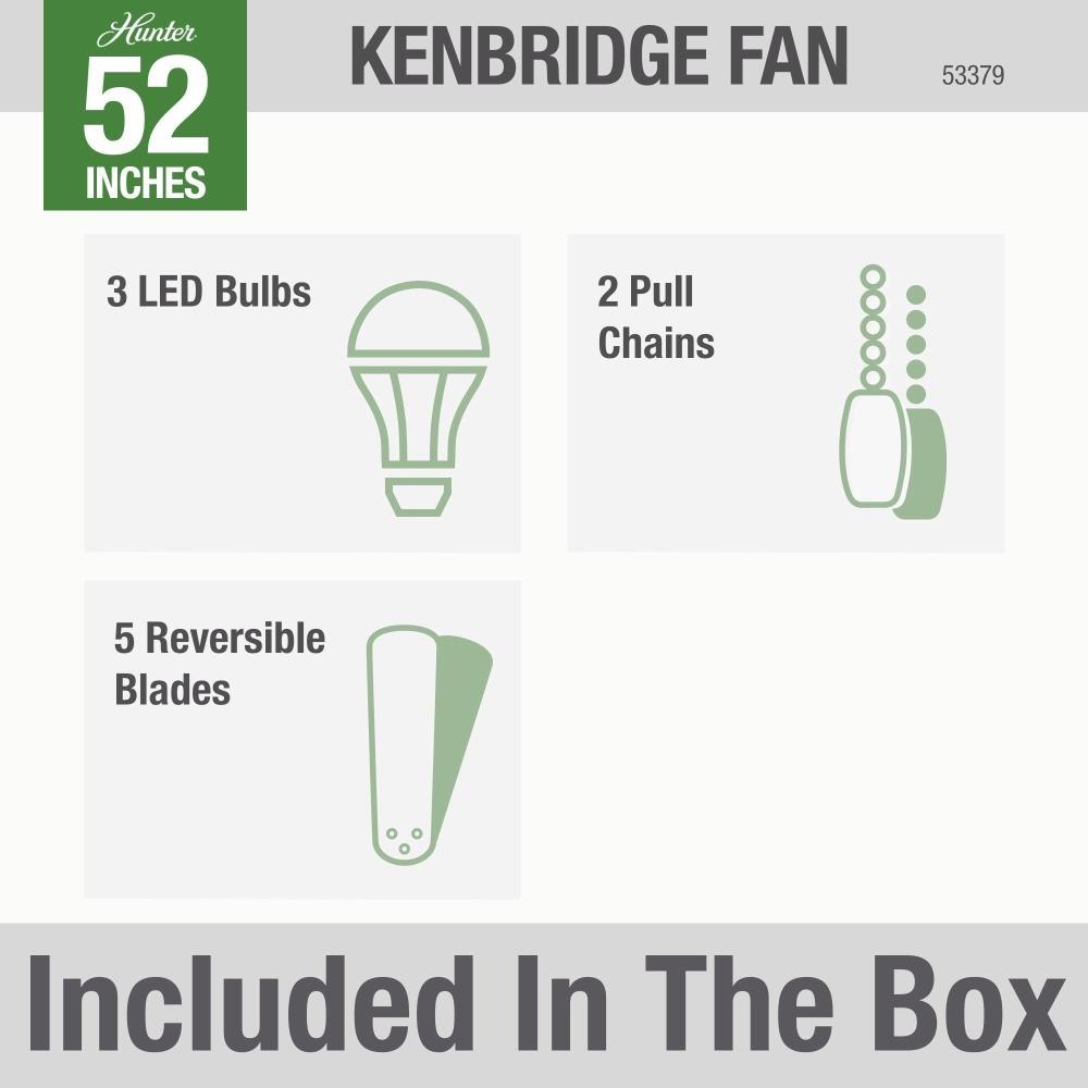 The Kenbridge ceiling fan features a unique, more compact design that takes up less space in your rustic-style room. With an option to install with or without lights, the Kenbridge low-profile fan includes high-efficiency, dimmable LED bulbs so you can get the perfect ambiance in any large room with low ceilings in your home. This rustic ceiling fan features reversible blades powered by a three-speed WhisperWind motor to deliver ultra-powerful air movement with whisper-quiet performance.