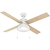 Hunter 52 inch Indoor Ceiling Fan with LED Light and Pull Chain - Standard Mount White Ceiling Fan, 4 Blades, For Bedroom, Living Room, or Kitchen, Quiet - Loki 54151, Fresh White