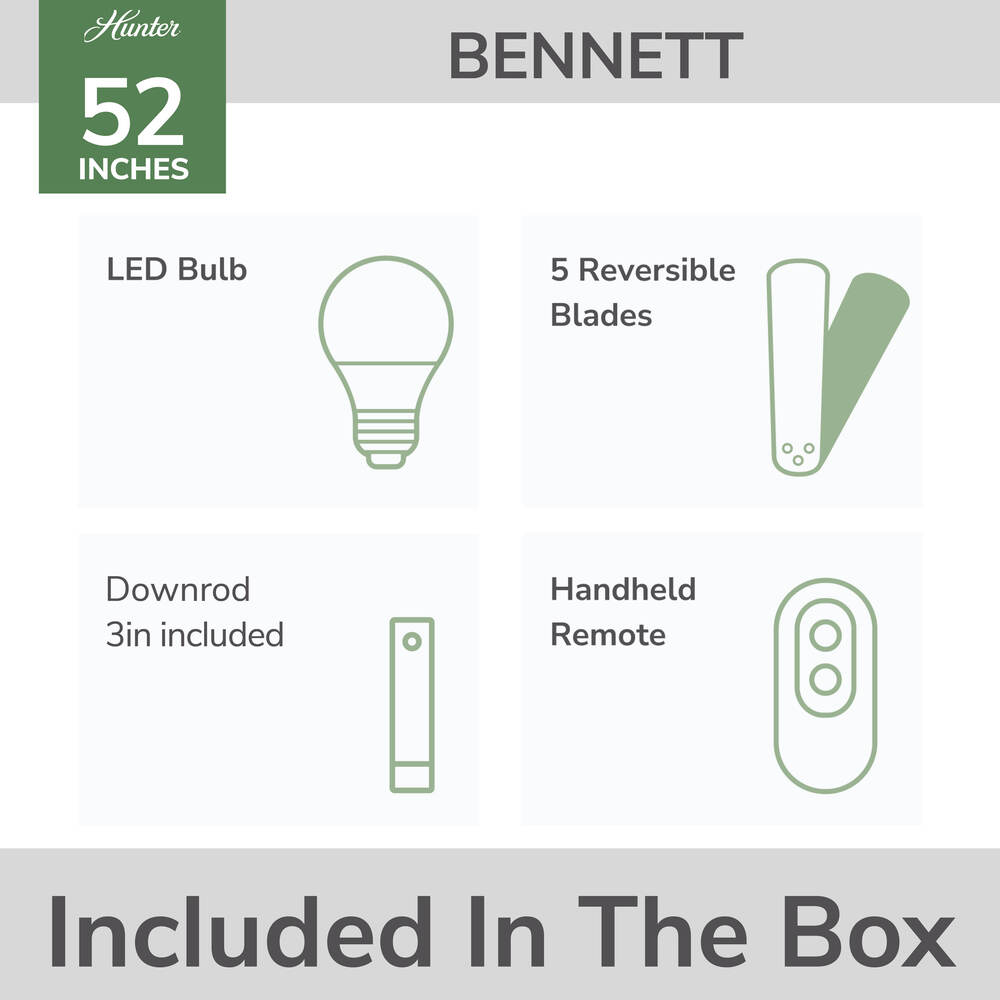 Hunter® Bennett 52" Matte Black Indoor 1-Light Ceiling Fan with Remote