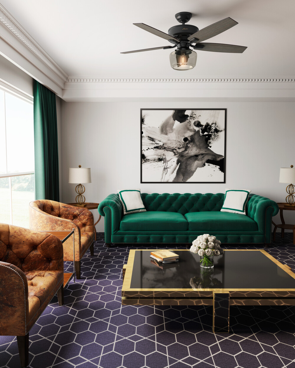 Regarded as one of our best ceiling fans by designers and homeowners alike, the renewed classic look of a Bennett ceiling fan will add flair to your traditional living spaces. A smoked yet clear open glass globe completes this fan's harmonious color palette while adding a touch of glamour. Whether you like your light moody or as bright as possible, the energy-efficient LED Edison bulbs enhance the ambiance of your room while a powerful WhisperWind motor will make your formal, chic spaces as functional as they are stylish.