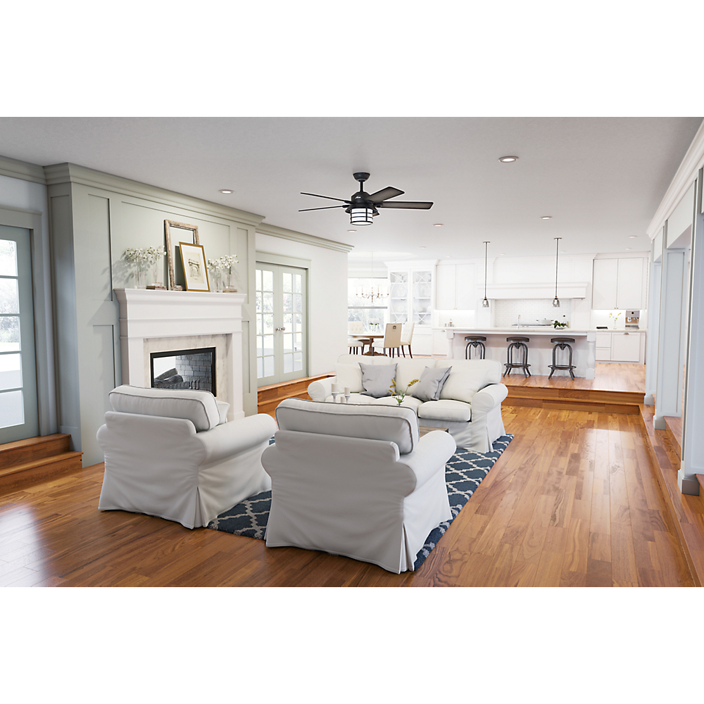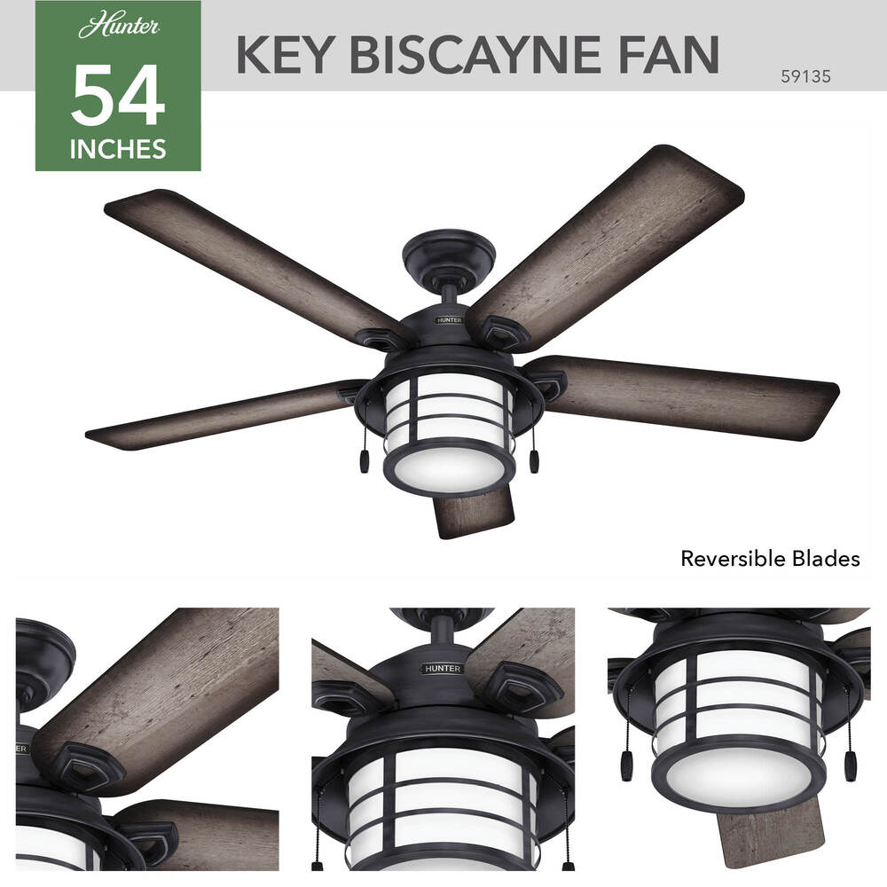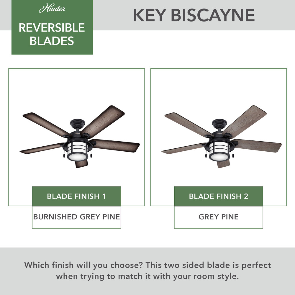 Outfitted with a blade finish reminiscent of aged Beachwood, rustic weathered finishes and a lantern-style light kit, the Key Biscayne brings a touch of the Maritimes to your space. Perfect for any room or covered area exposed to moisture and humidity, this damp-rated fan includes stainless steel hardware and will fit nicely in your large, outdoor sunroom or patio's beach house decor. The Key Biscayne features reversible blades powered by a three-speed WhisperWind motor to deliver ultra-powerful air movement with whisper-quiet performance.